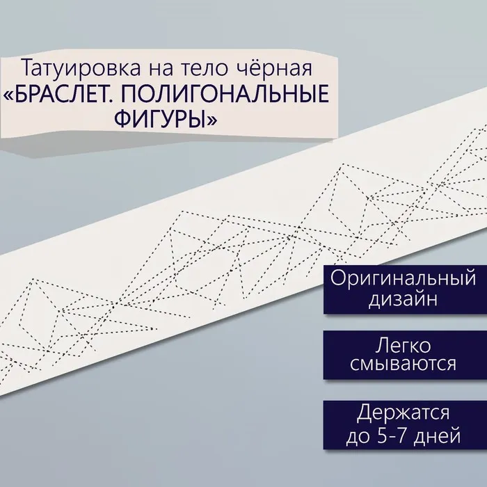 Переводная тату на тело чёрная «Браслет. Полигональные фигуры», 20×3 см — Характеристики