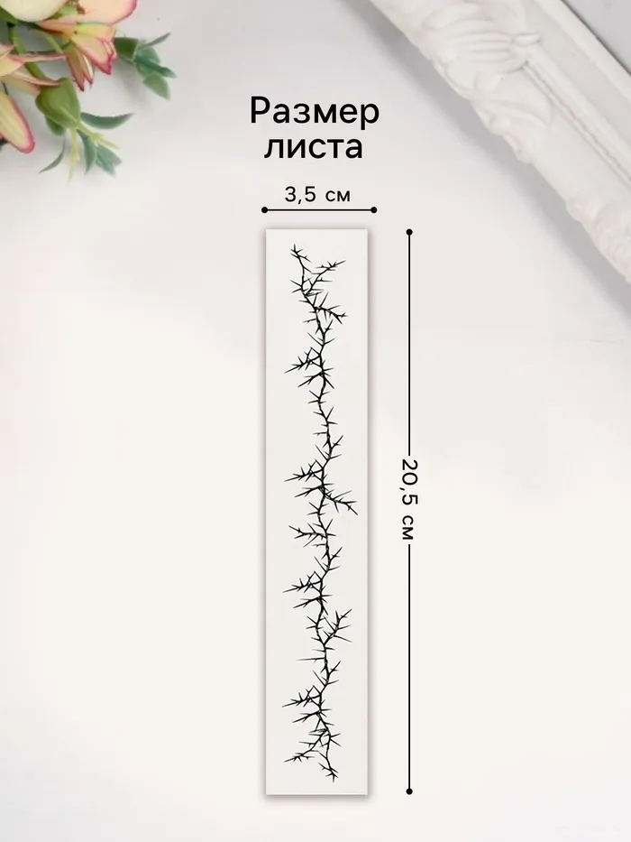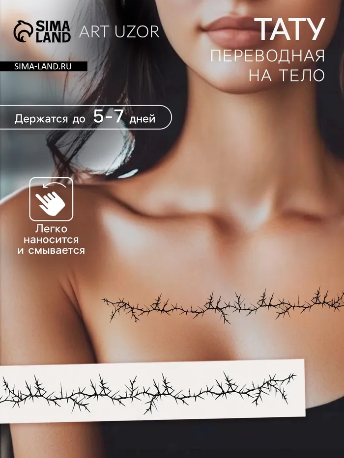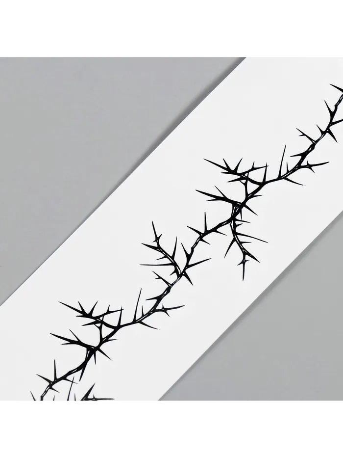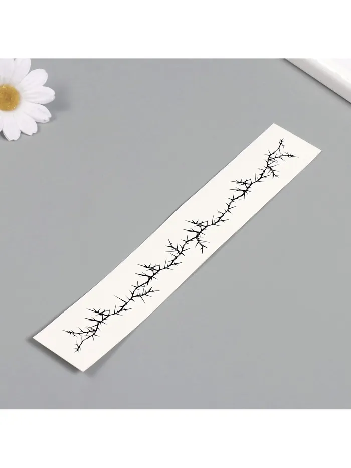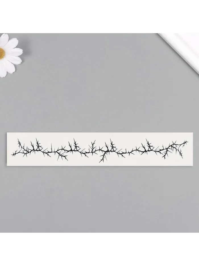 - Эффектный дизайн — шипы и линии: Подчеркните свою индивидуальность с помощью этого тату-браслета. Чёрные линии и шипы добавляют образу загадочности и шарма, легко дополняя как повседневные, так и праздничные наряды.