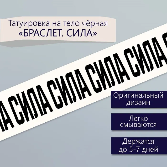 Добавь стильный акцент в свой образ! Переводная тату «Сила» — универсальное украшение, которое преобразит ваше запястье.