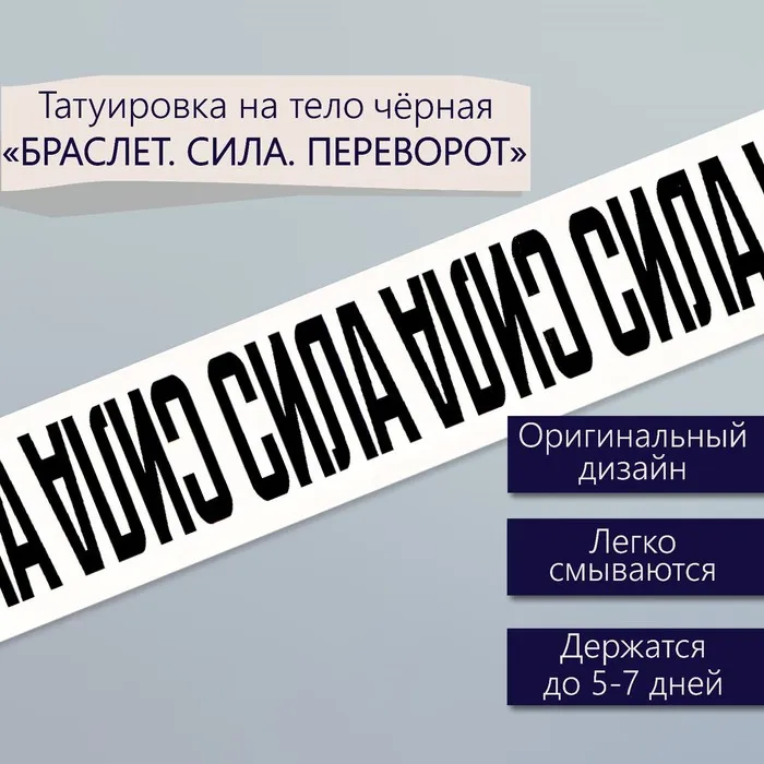 Переводная тату на тело чёрная «Браслет. Сила. Переворот», 20×3 см — Характеристики