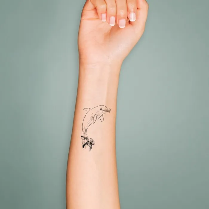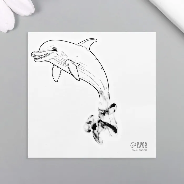 Переводная тату на тело чёрная «Чернила. Дельфин», 6×6 см — Характеристики