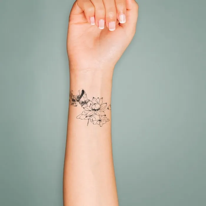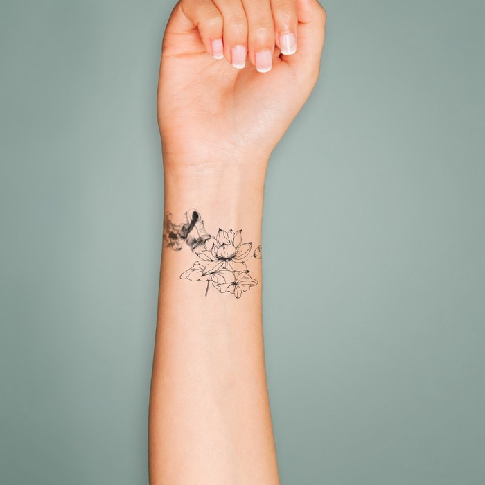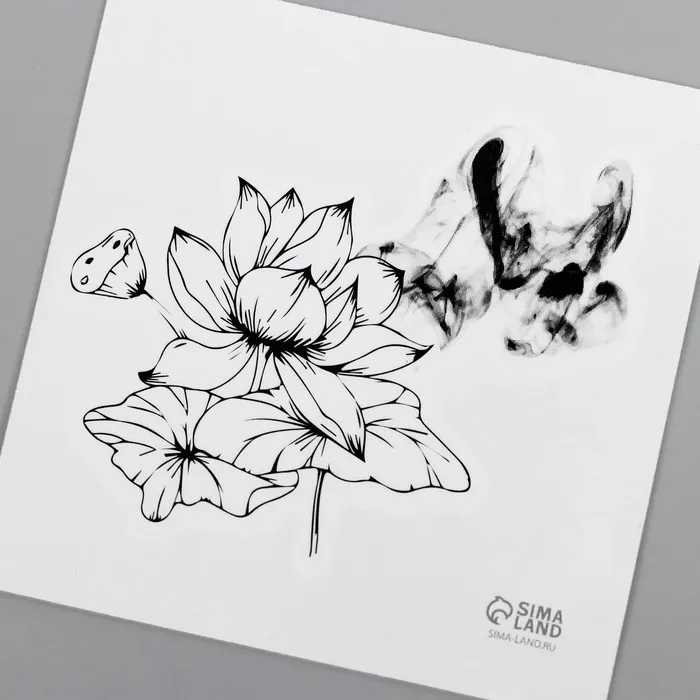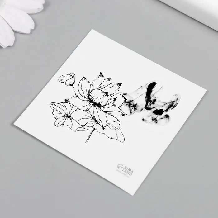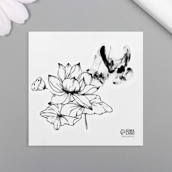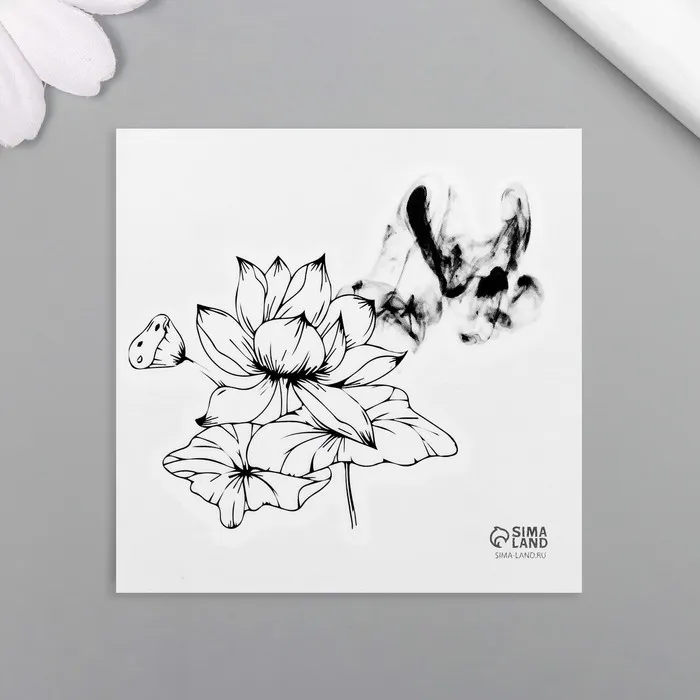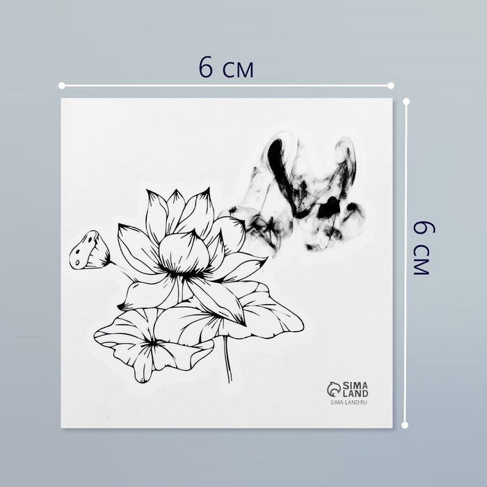 Переводная тату на тело чёрная «Чернила. Лотосы», 6×6 см — Характеристики