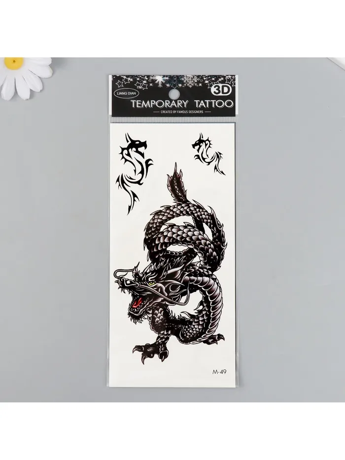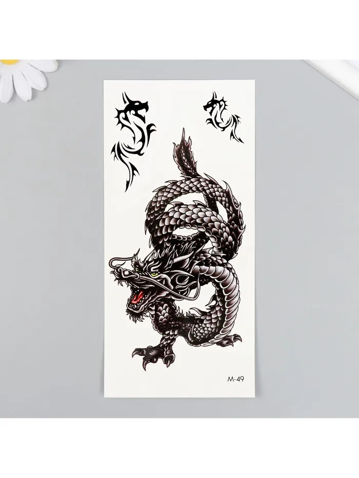Выбор переводной татуировки в виде чёрного дракона — это не просто украшение, это возможность выразить свою внутреннюю силу и креативность. Добавьте этот яркий элемент в ваш образ и дайте волю своему воображению!