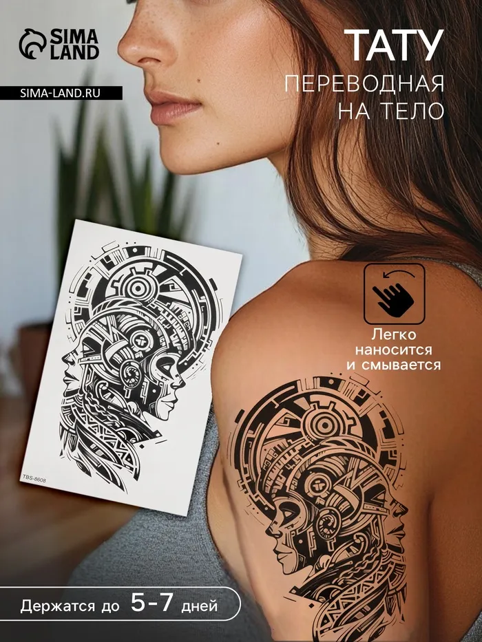 Переводная тату на тело чёрная «Этно. Два», 12×19 см — Характеристики