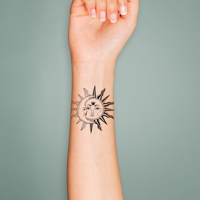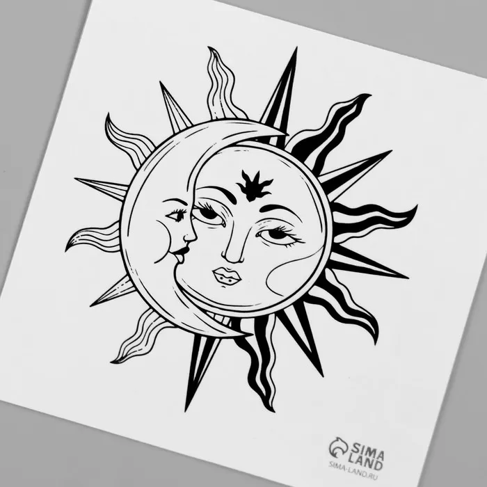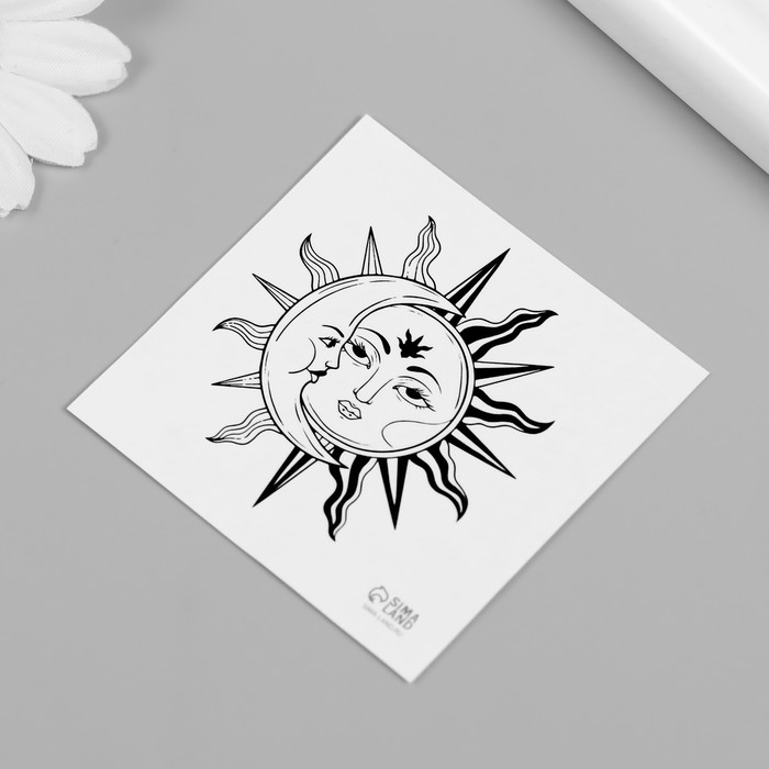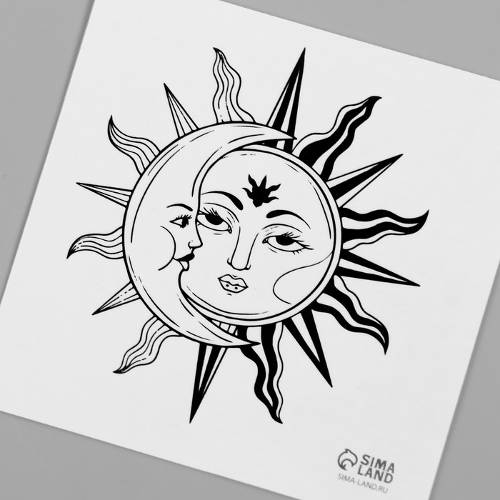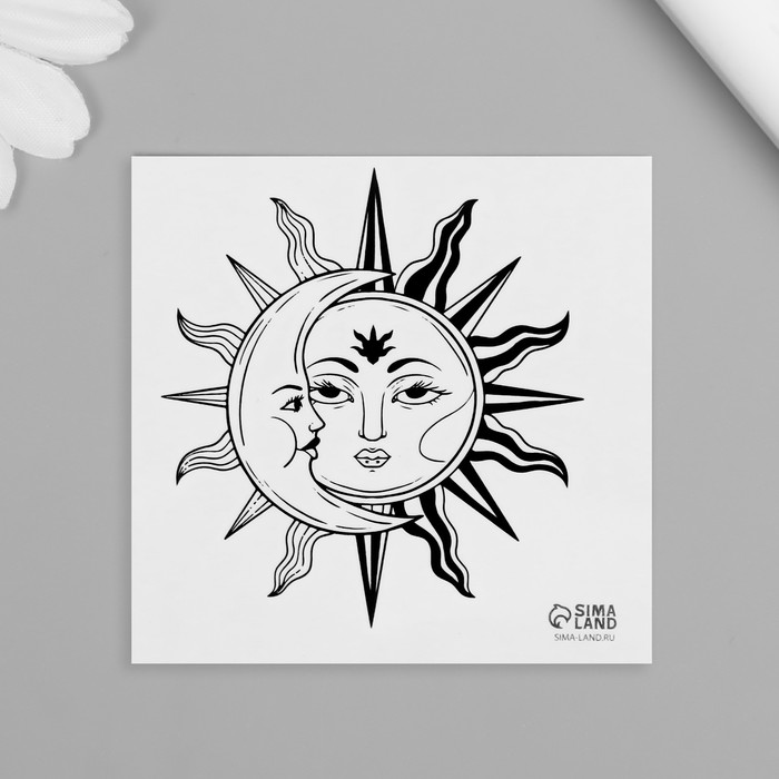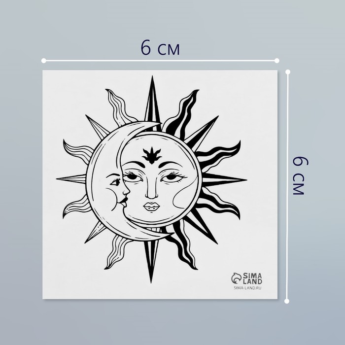 Переводная тату на тело чёрная «Эзотерика. Месяц и солнце», 6×6 см — Характеристики