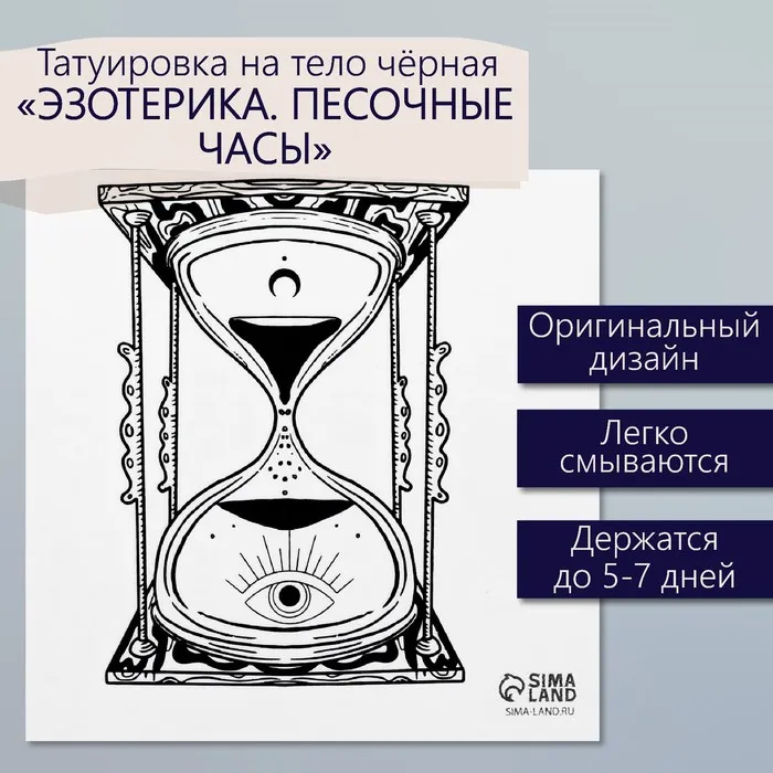 Переводная тату на тело чёрная «Эзотерика. Песочные часы», 6×6 см — Характеристики