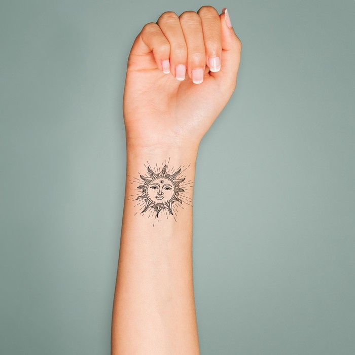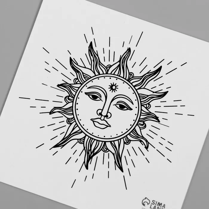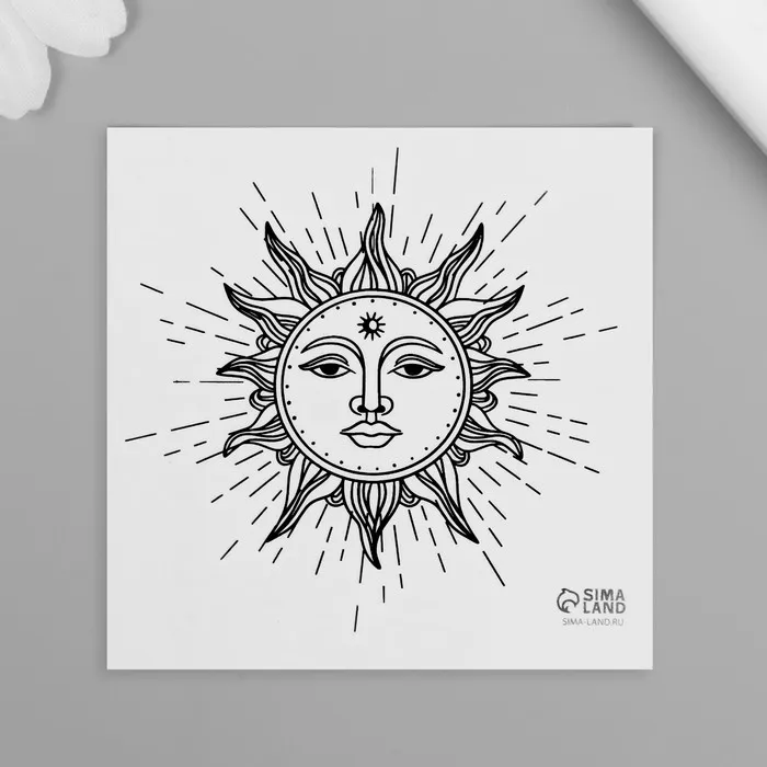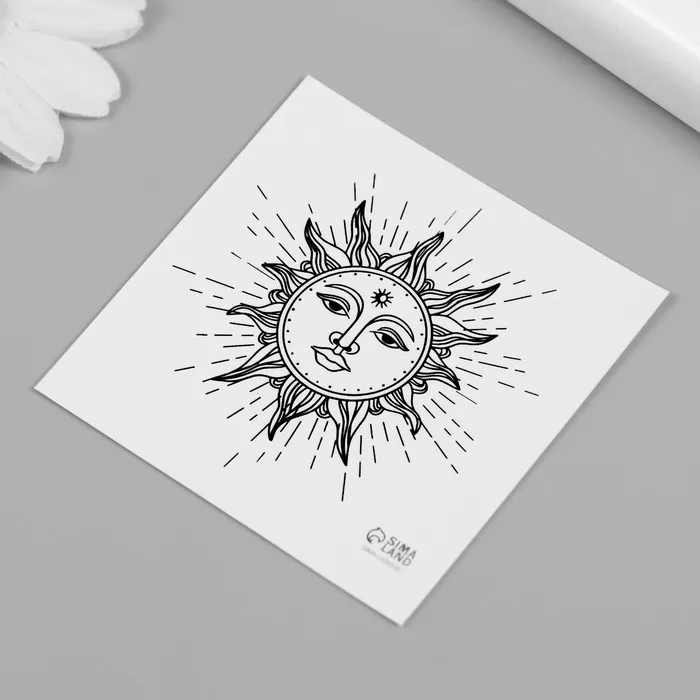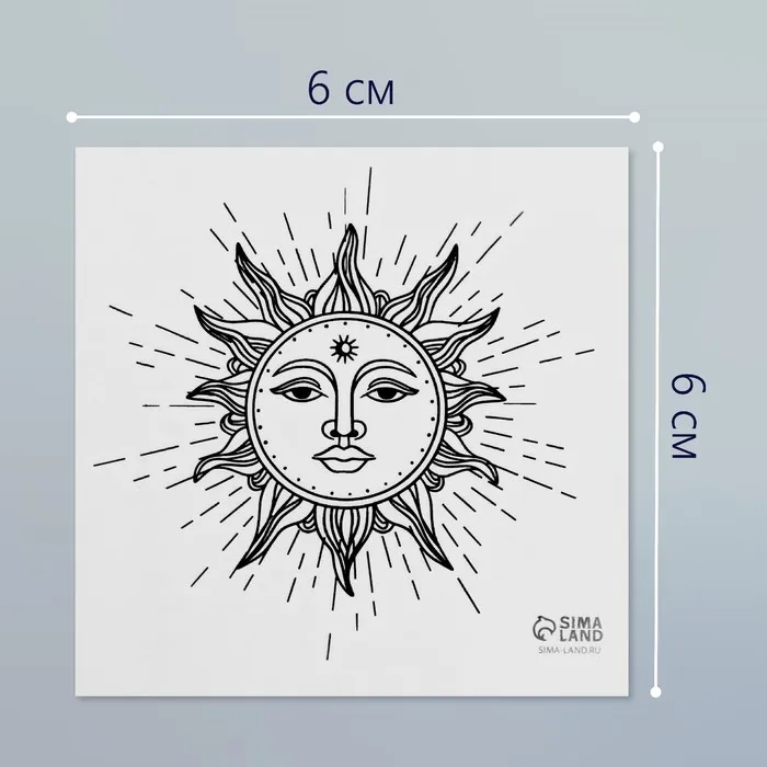 Переводная тату на тело чёрная «Эзотерика. Солнце», 6×6 см — Характеристики