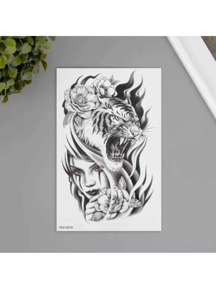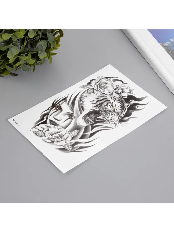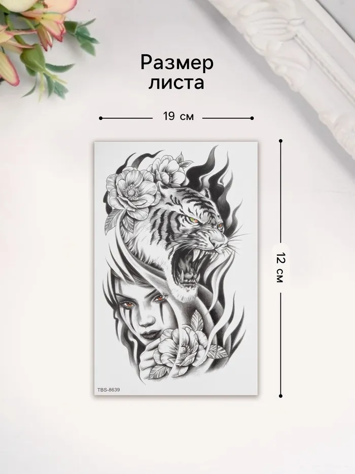 Переводная тату на тело чёрная «Хищница», 12×19 см — Характеристики