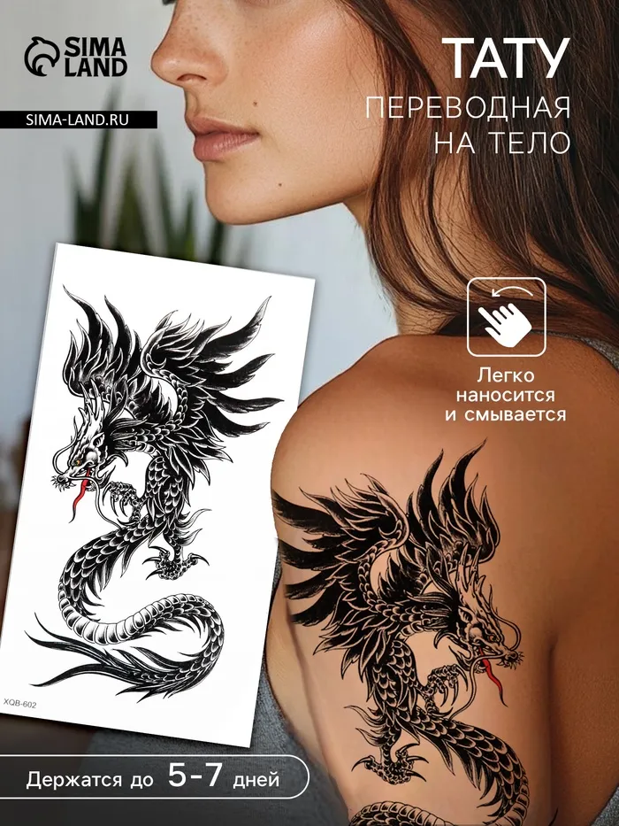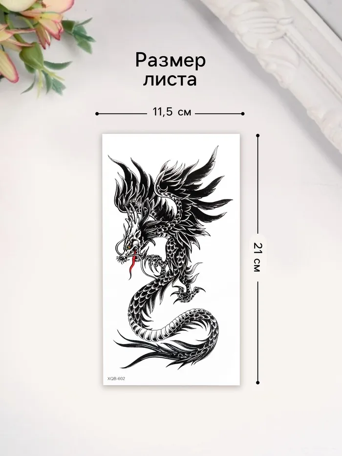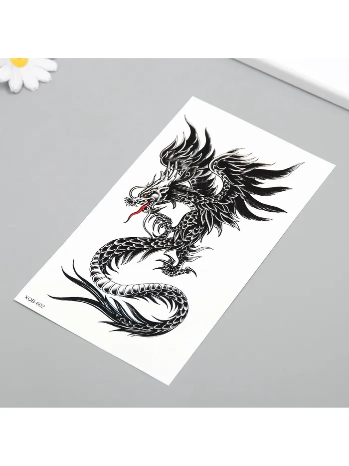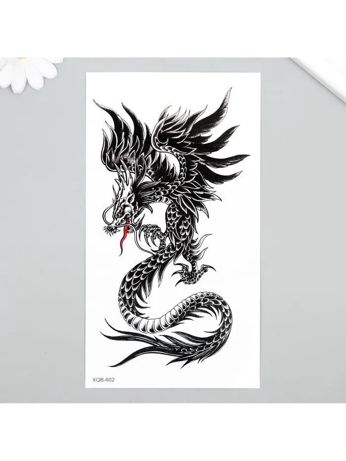 Переводная тату на тело чёрная «Китайский дракон», 11.5×21 см — Характеристики