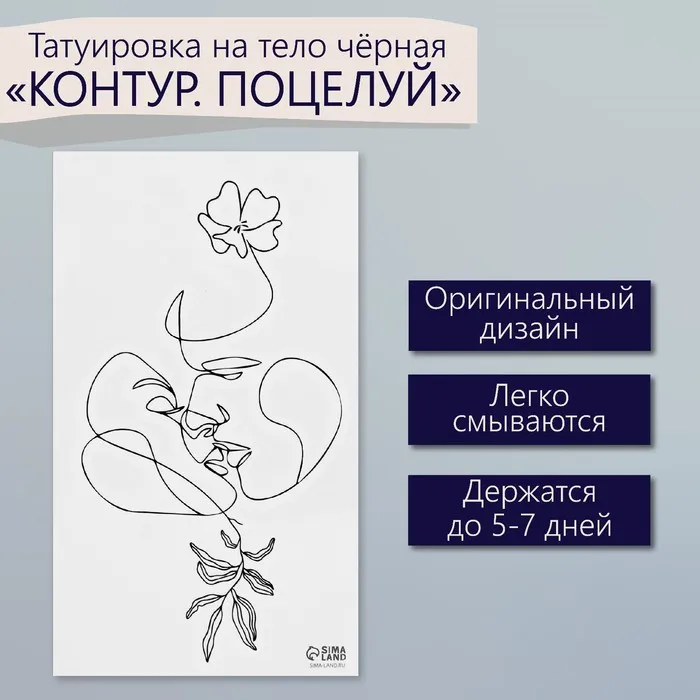 Переводная тату на тело чёрная «Контур. Поцелуй», 6×10.5 см — Характеристики