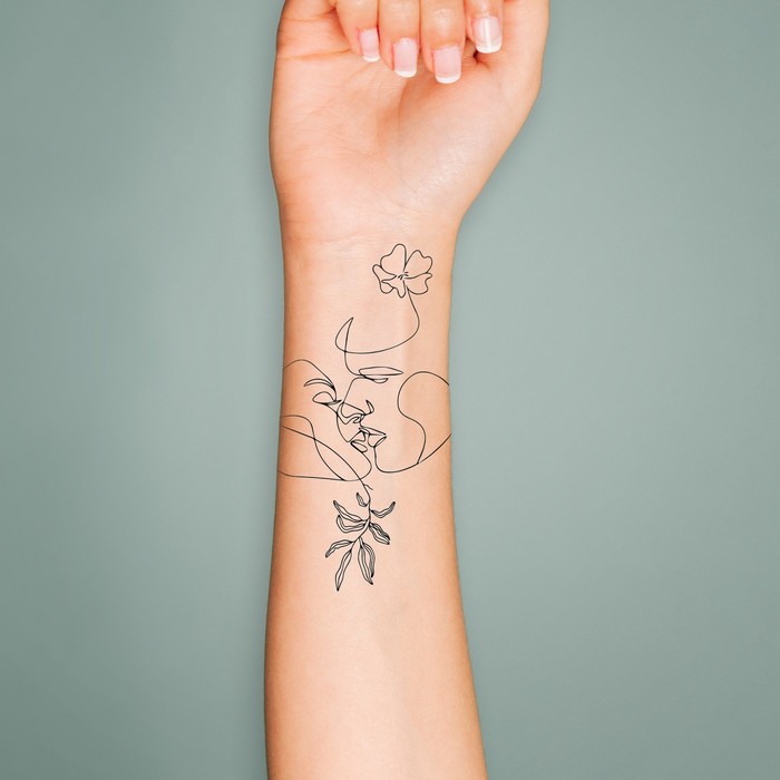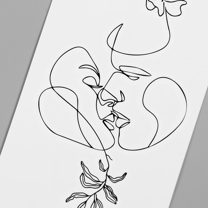 Вырази свои чувства и стиль с каждым штрихом! Чёрная переводная татуировка «Контур. Поцелуй» — это элемент самовыражения и уникальности, передающий очарование минимализма и элегантности линий.