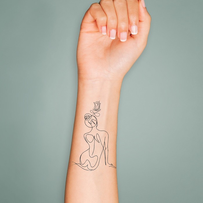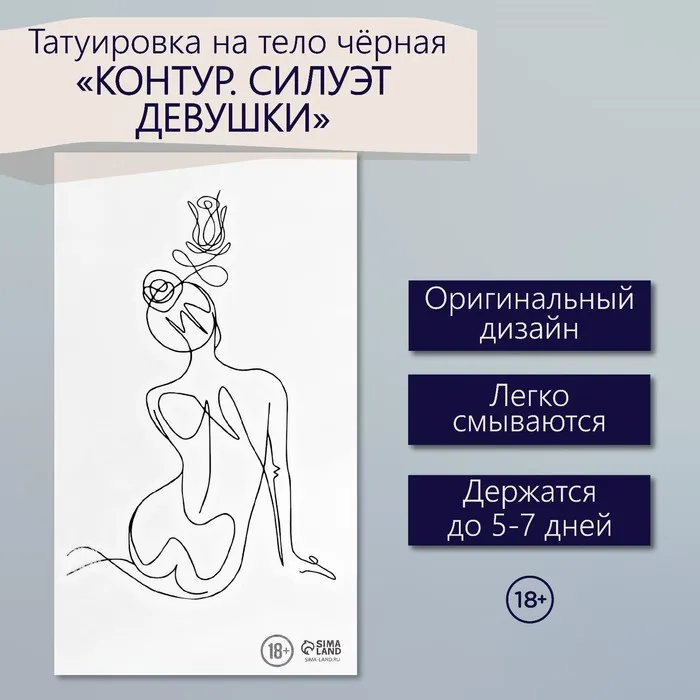 Переводная тату на тело чёрная «Контур. Силуэт девушки», 6×10.5 см — Характеристики