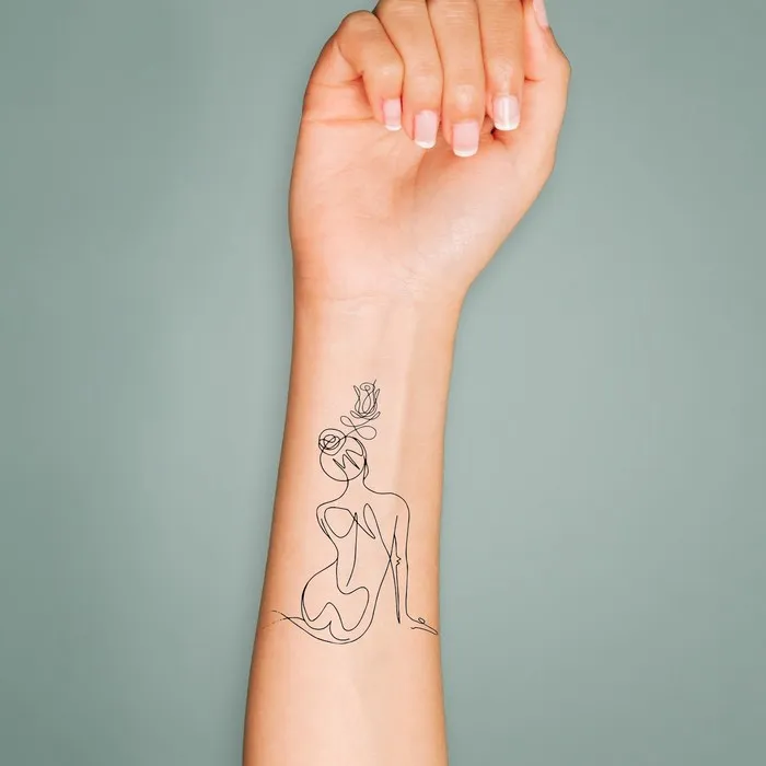 Вырази свою индивидуальность с помощью необычного искусства! Переводная черная татуировка «Контурный силуэт девушки» предлагает стильное решение временного украшения тела, подходящее для любых ситуаций, включая праздники.