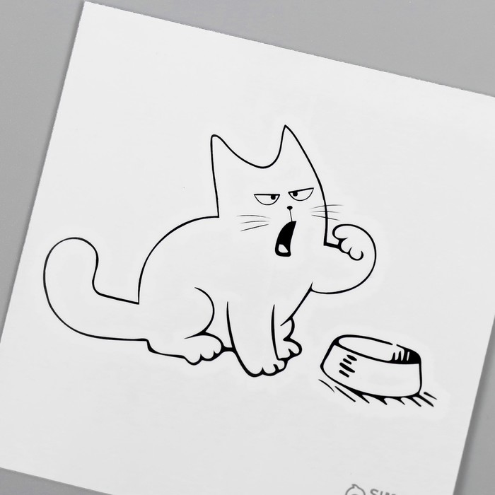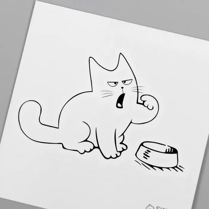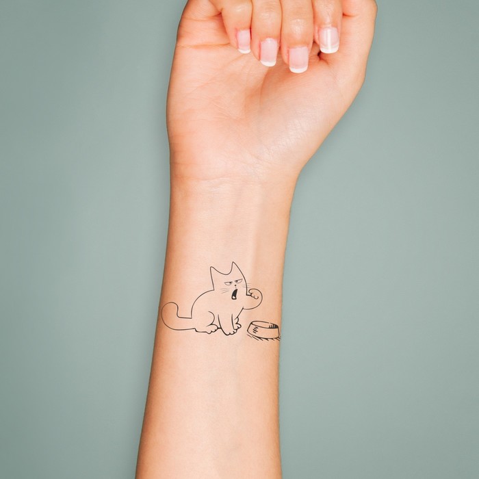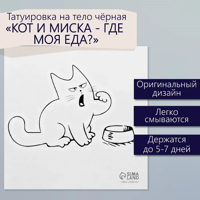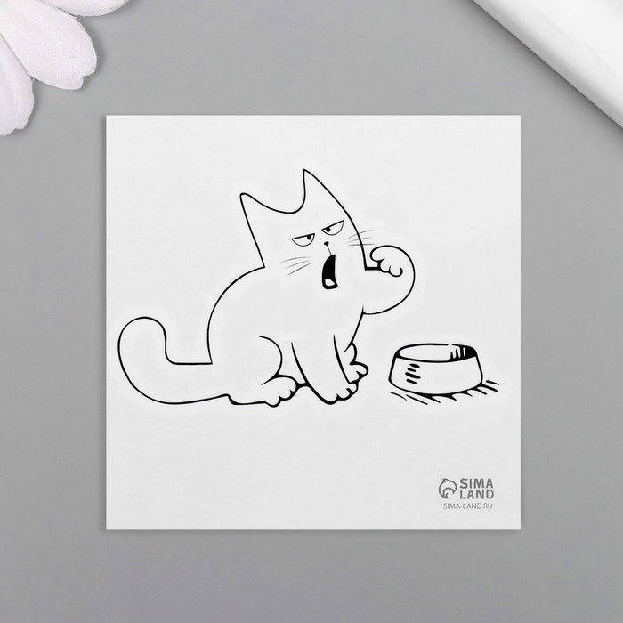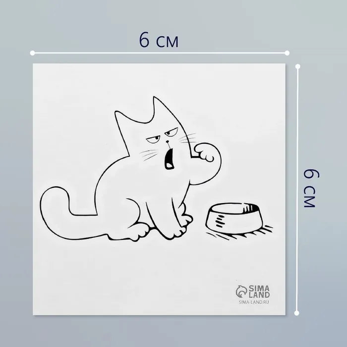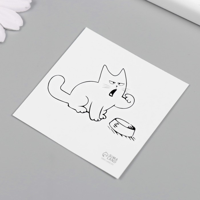 Переводная тату на тело чёрная «Кот и миска: Где моя еда?», 6×6 см — Характеристики