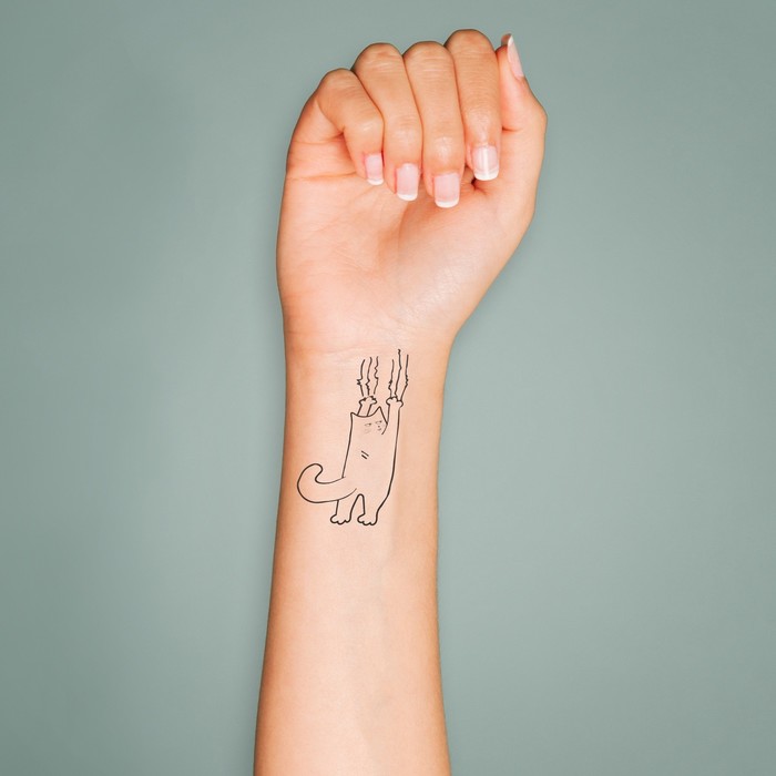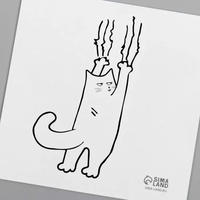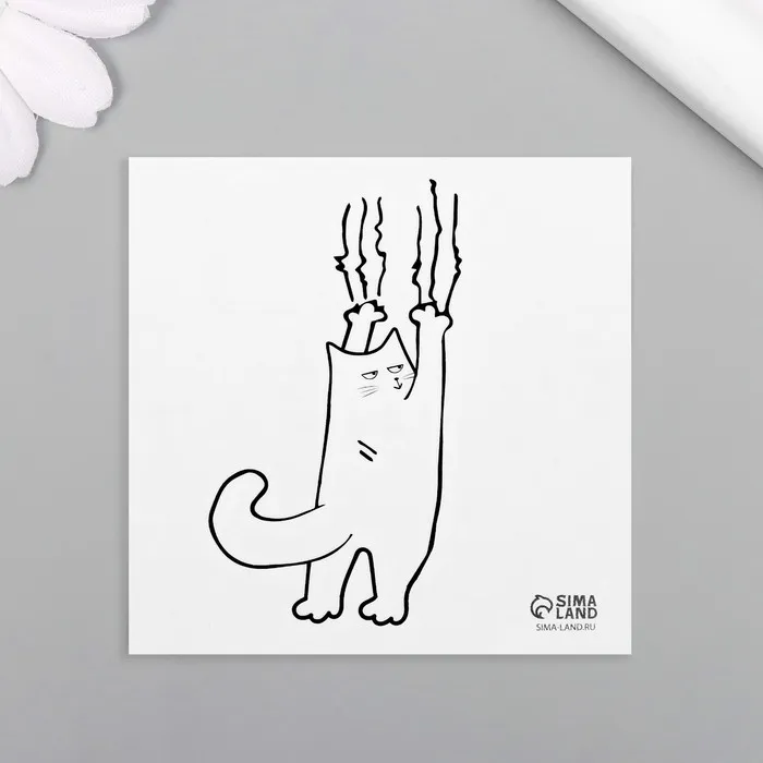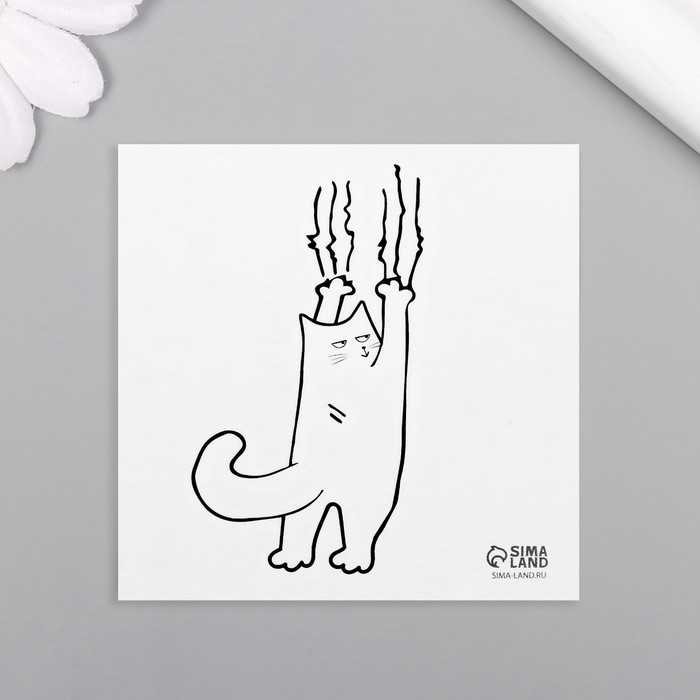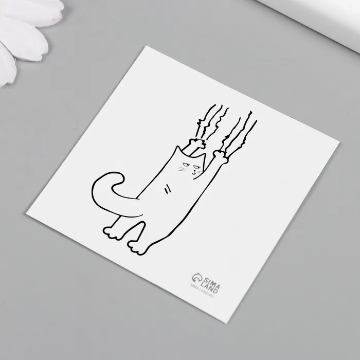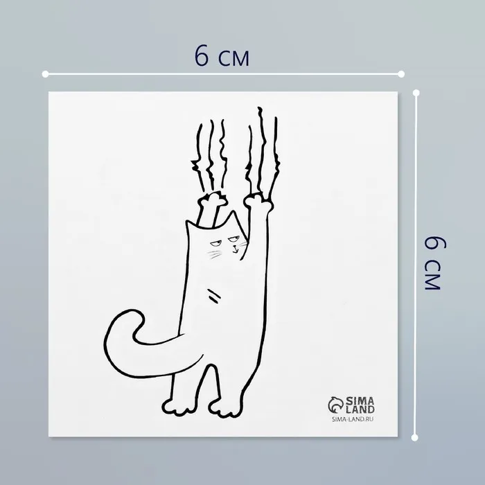 Переводная тату на тело чёрная «Кот царапун», 6×6 см — Характеристики