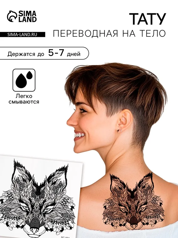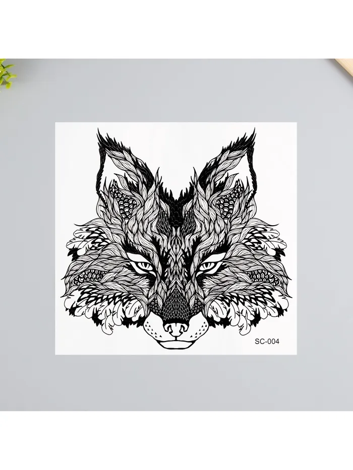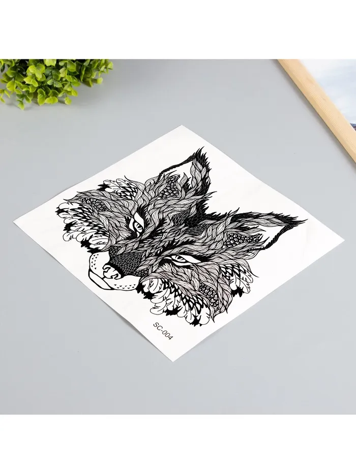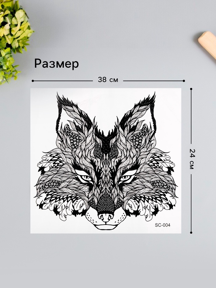 Переводная тату на тело чёрная «Лис», 38×24 см — Характеристики