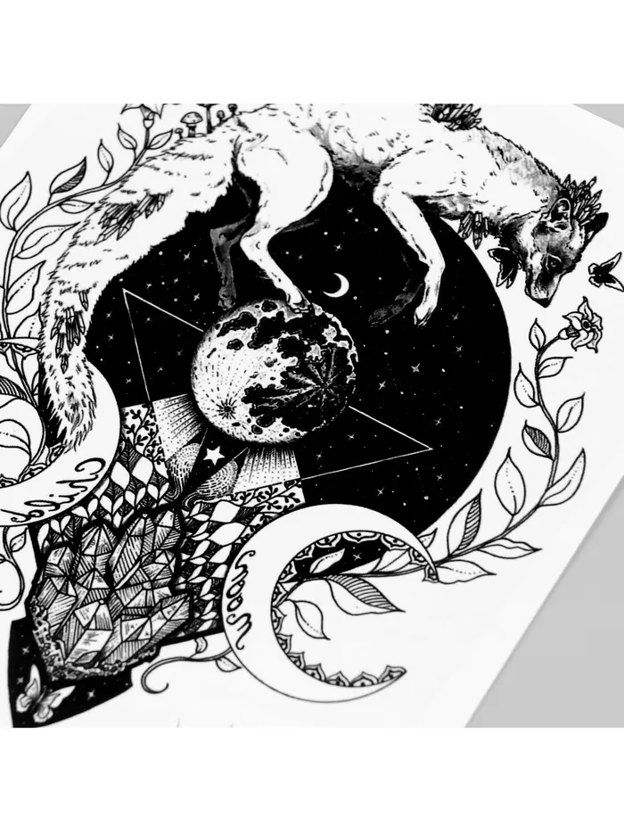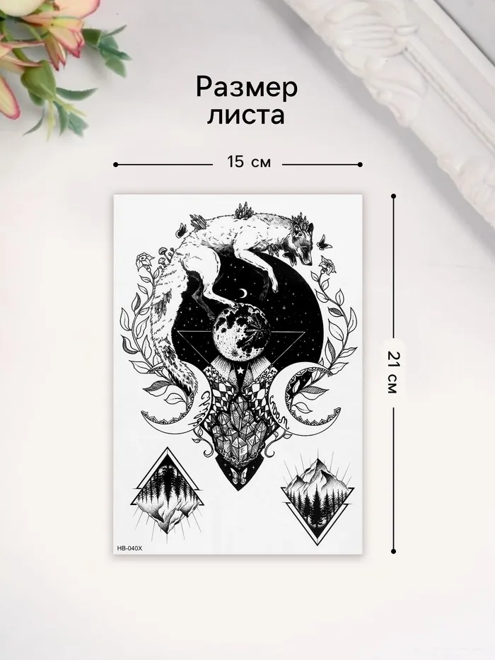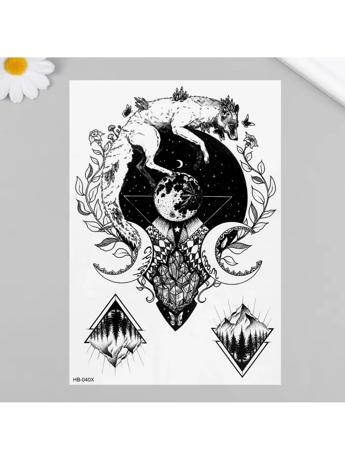 Переводная тату на тело чёрная «Лунный лис», 21×14.8 см — Характеристики