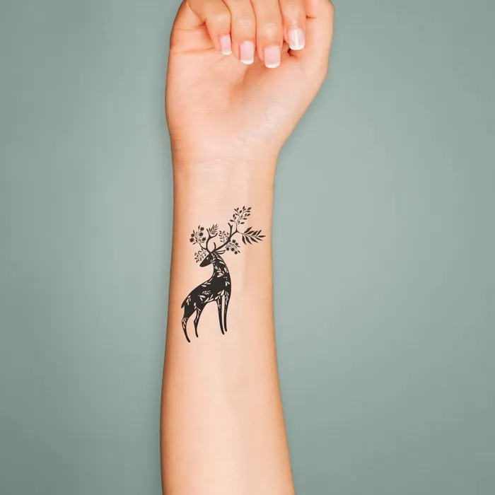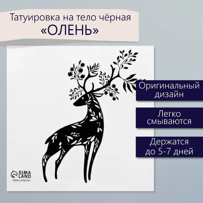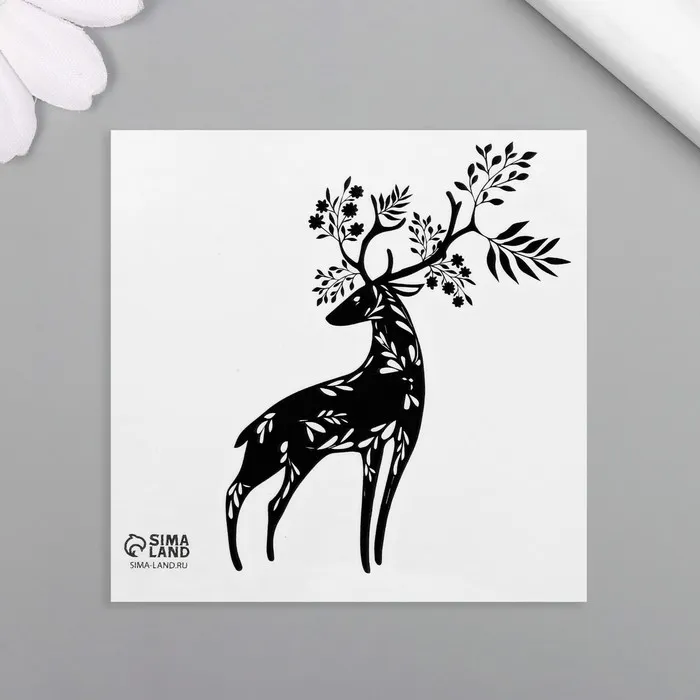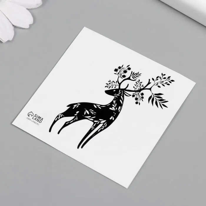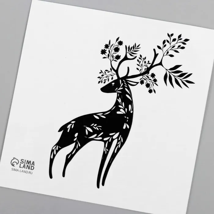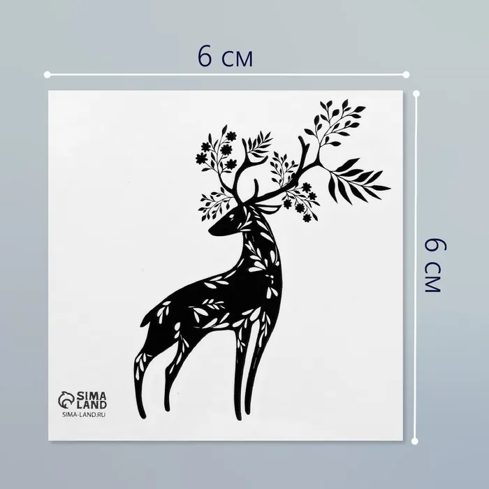Переводная тату на тело чёрная «Олень», 6×6 см — Характеристики