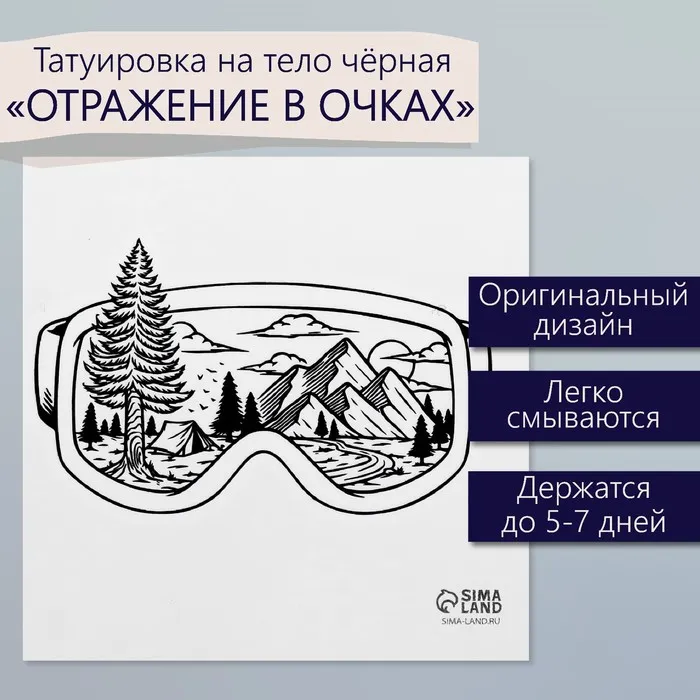 Переводная тату на тело чёрная «Отражение в очках», 6×6 см — Характеристики
