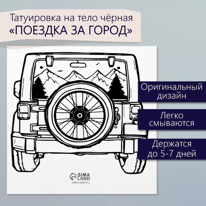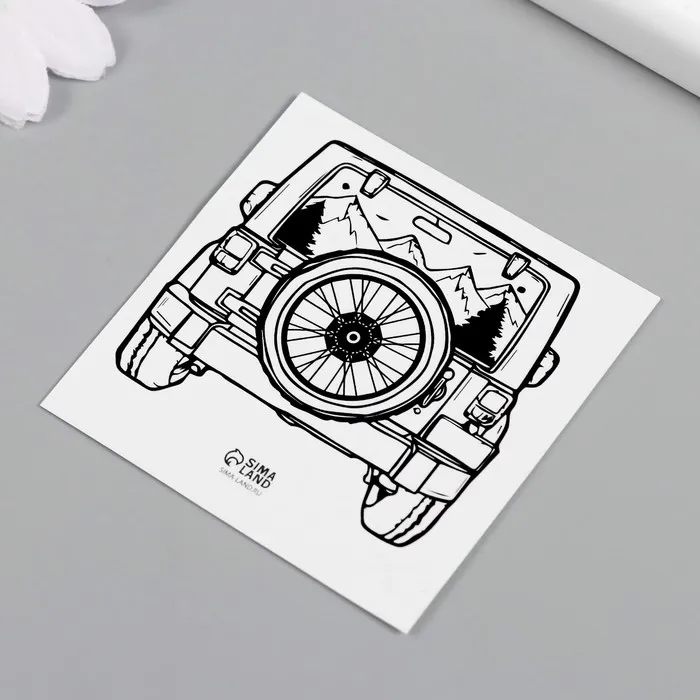 Переводная тату на тело чёрная «Поездка за город», 6×6 см — Характеристики