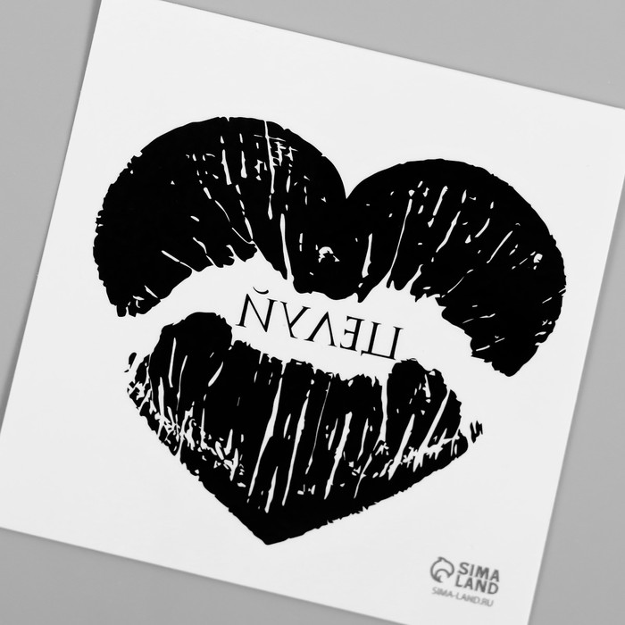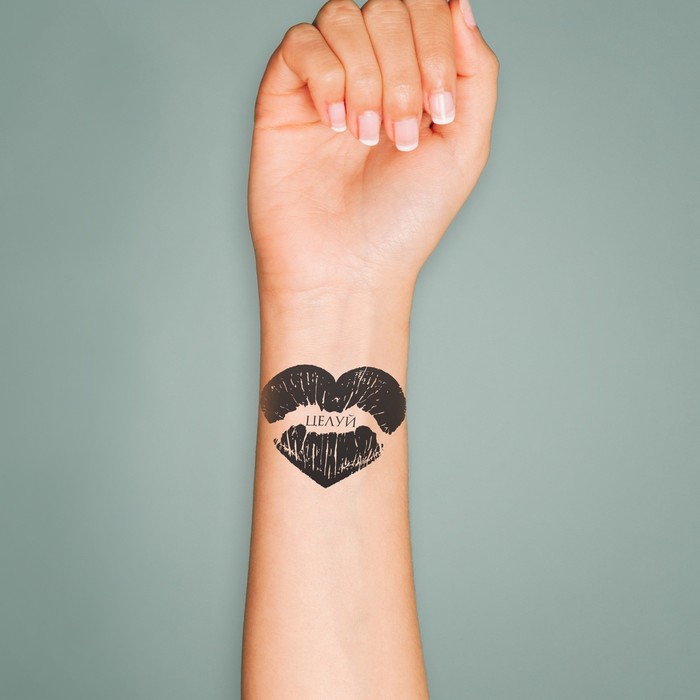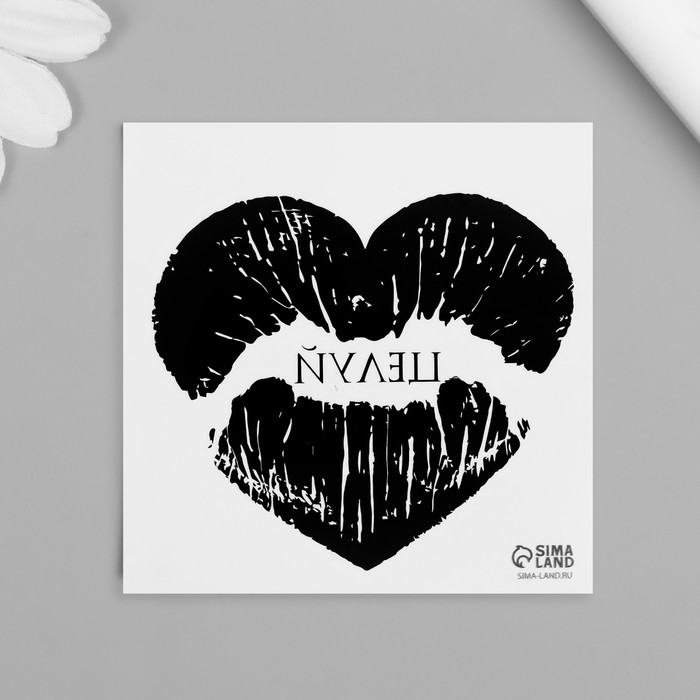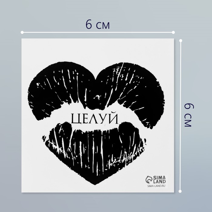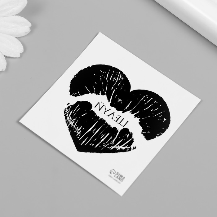 Переводная тату на тело чёрная «Сердце-отпечаток губ. Целуй», 6×6 см — Характеристики