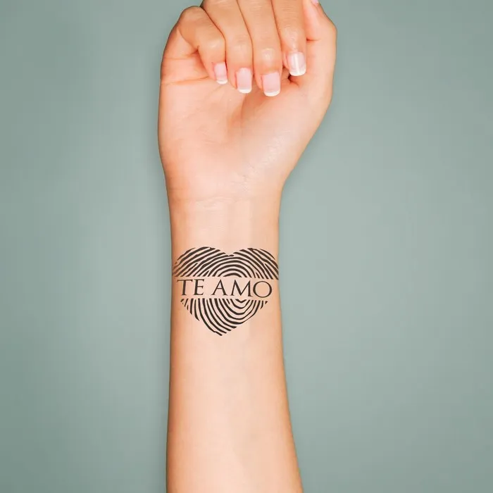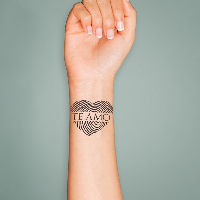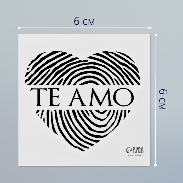 Переводная тату на тело чёрная «Сердце-отпечаток. Te amo», 6×6 см — Характеристики