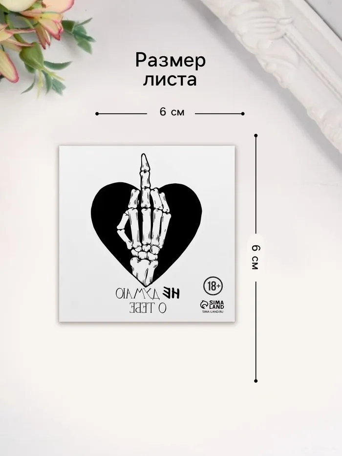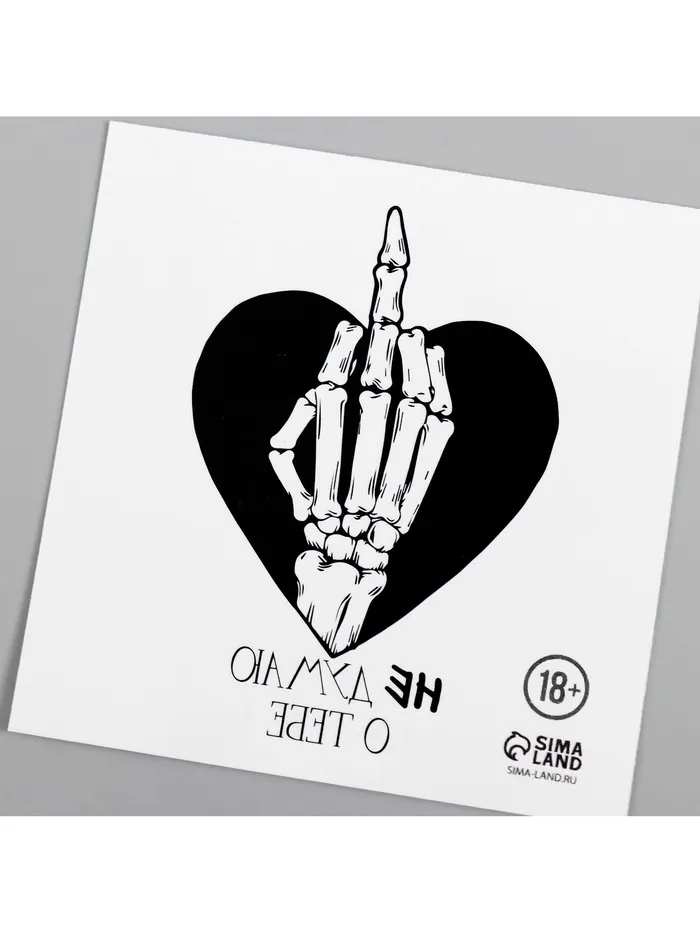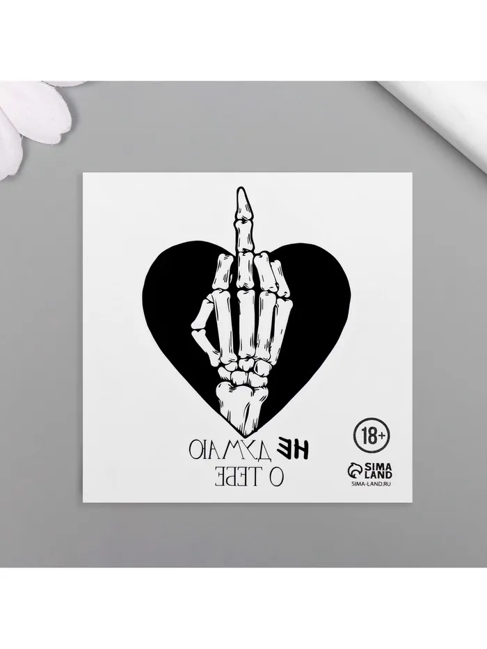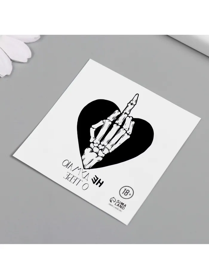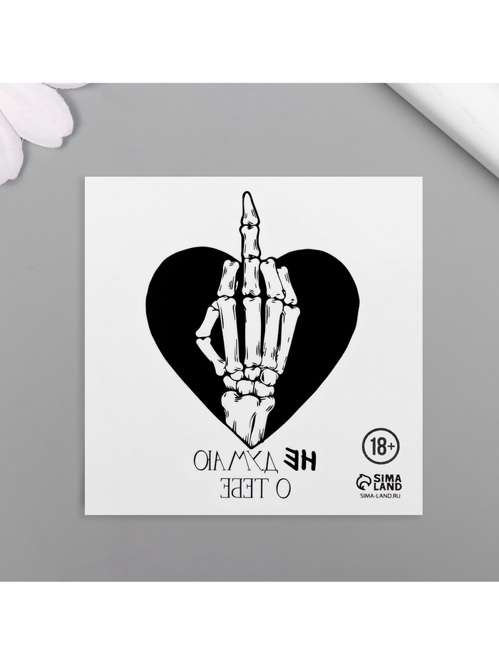 Переводная тату на тело чёрная «Сердце с кистью скелета. Не думаю о тебе», 6×6 см — Характеристики
