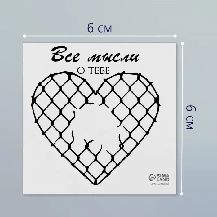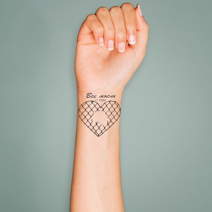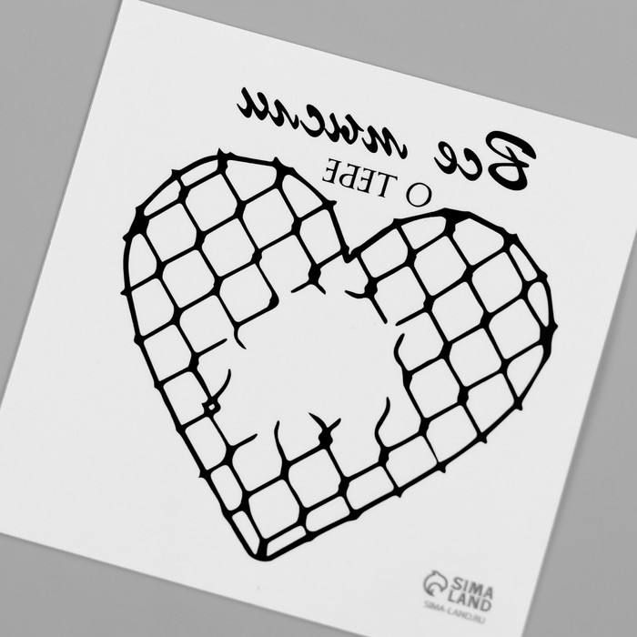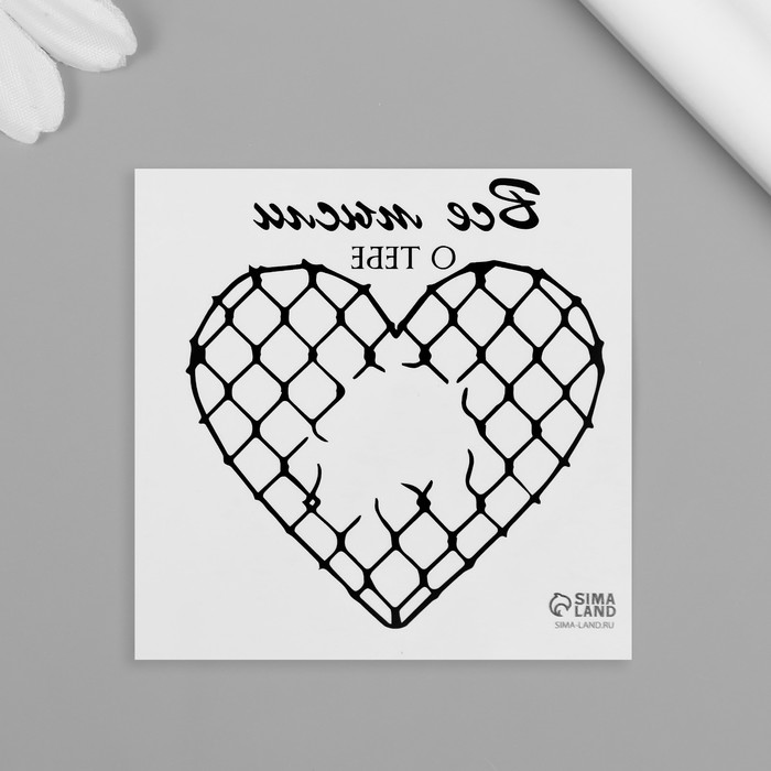 Переводная тату на тело чёрная «Сердце. Сетка Рабица. Все мысли о тебе», 6×6 см — Характеристики