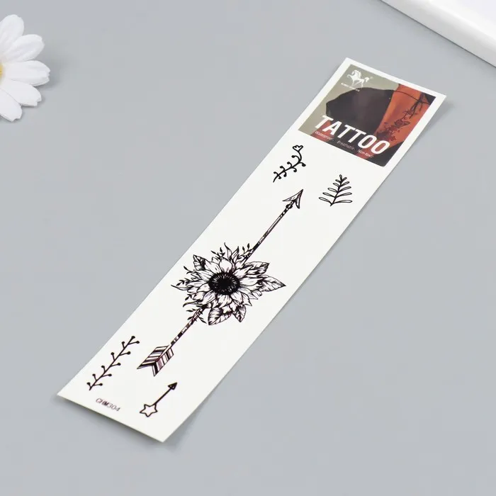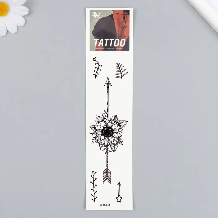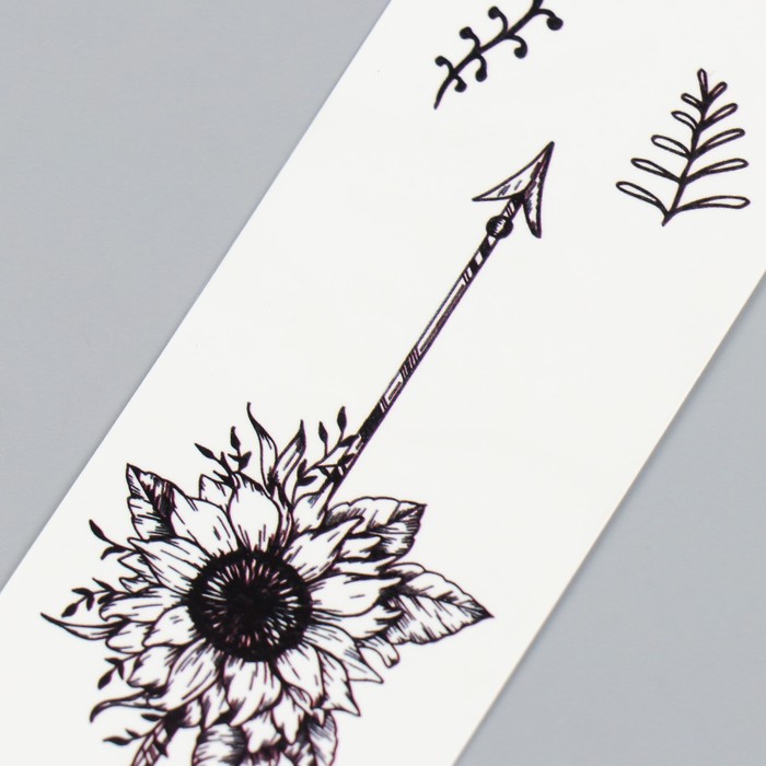 Представляем вам уникальный способ добавить в ваш образ или праздник нотку загадочности и природной красоты. Эта переводная татуировка сочетает в себе два контрастных мотива — стрелы, символизирующие решимость и направление, и подсолнухи, олицетворяющие свет и жизненную силу. Чёрный цвет подчёркивает графичность рисунка, делая его стильным и универсальным дополнением для любого случая.