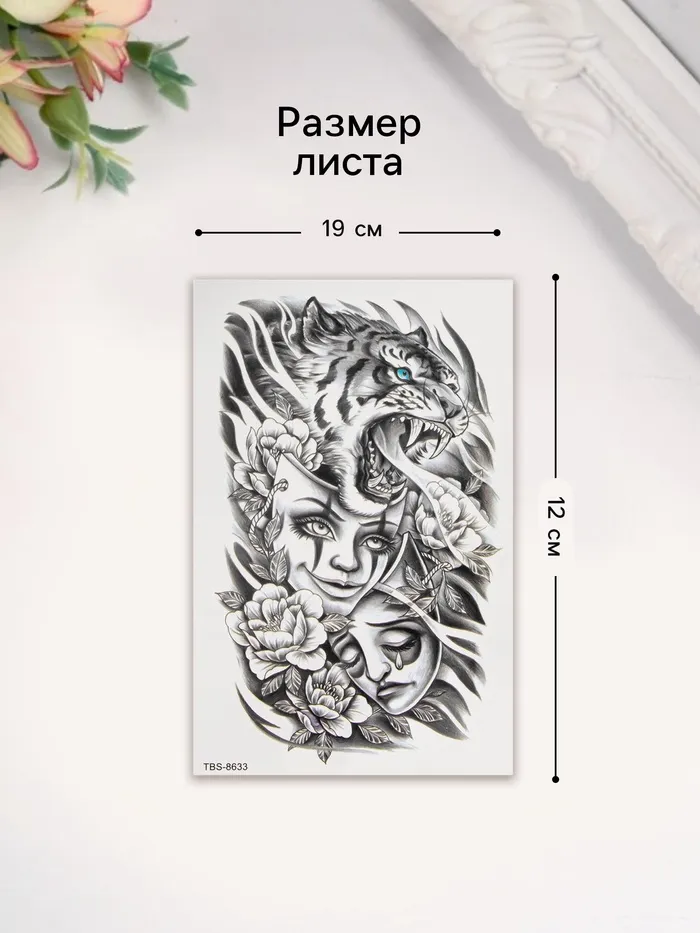 Переводная тату на тело чёрная «Театр», 12×19 см — Характеристики