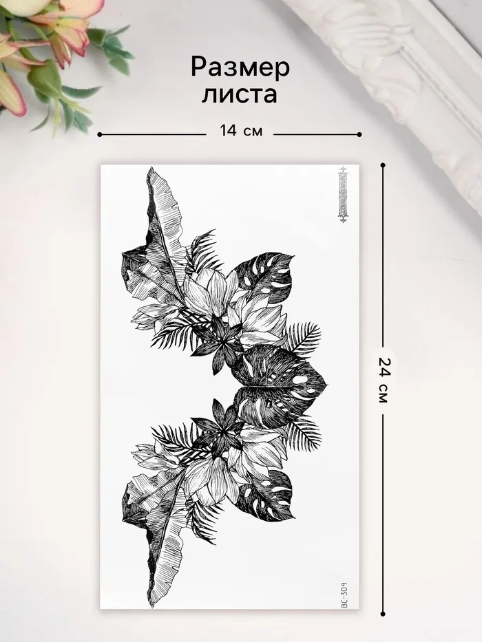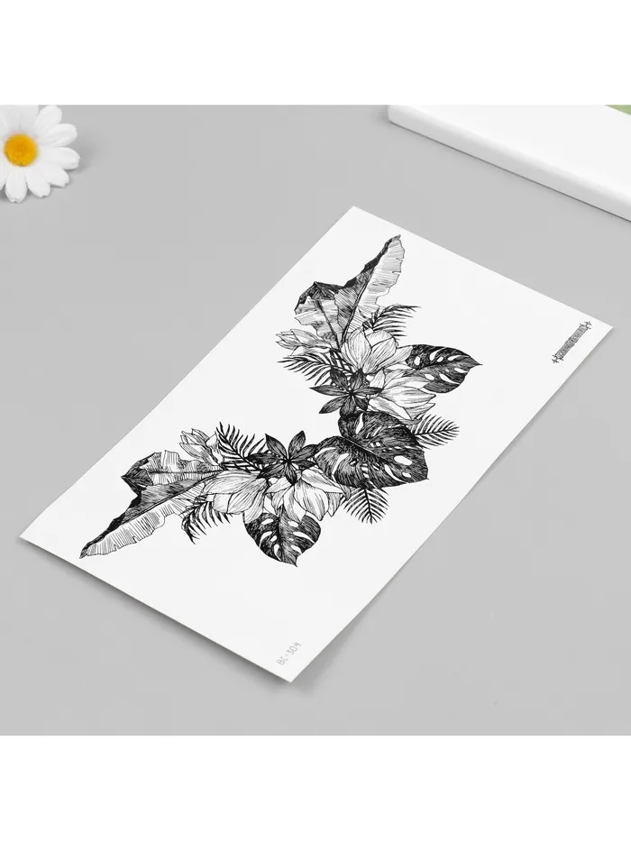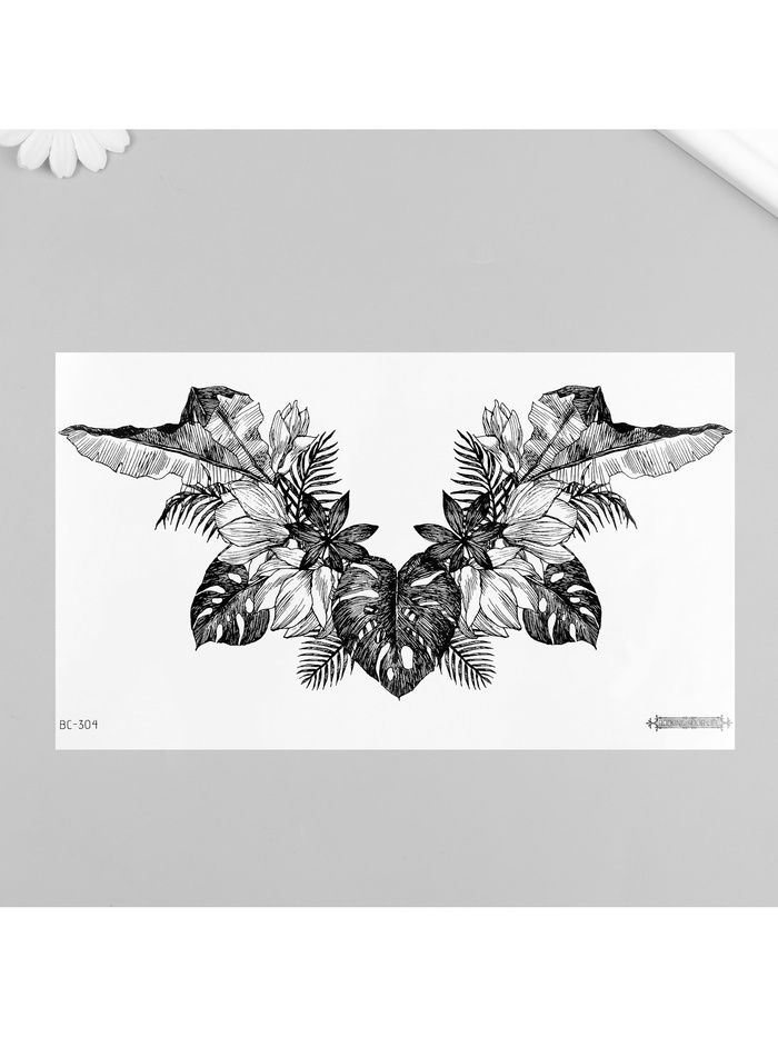 Переводная тату на тело чёрная «Украшение из листочков», 24×13.7 см — Характеристики