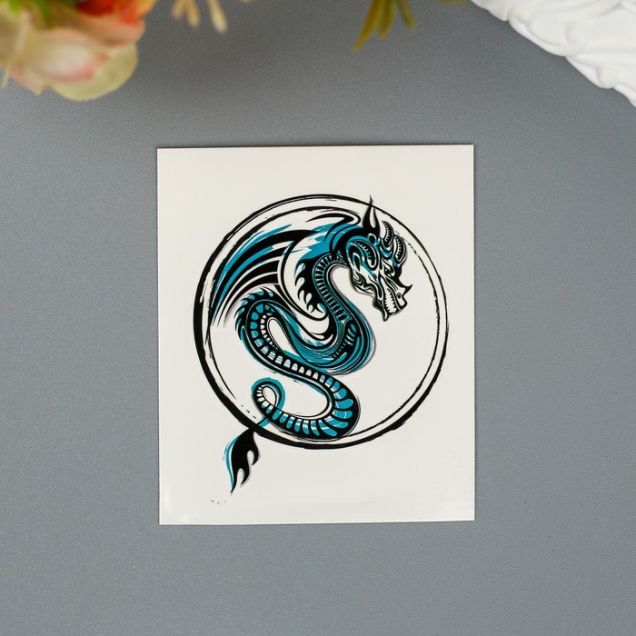 Переводная тату на тело «Синий дракон в круге»