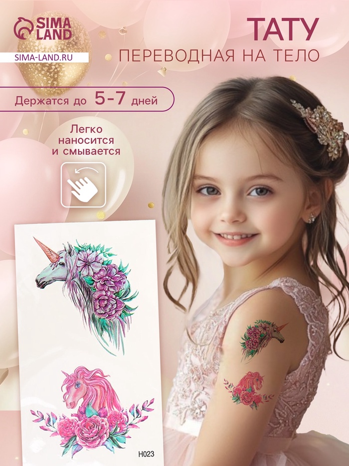 Переводные тату на тело цветные «Единороги и пионы», 10.5×6 см