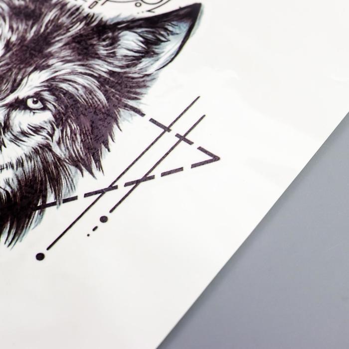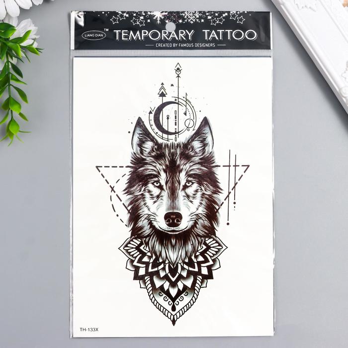 Переводная тату на тело чёрная «Волк и символы», 21×15 см — Характеристики