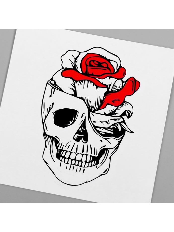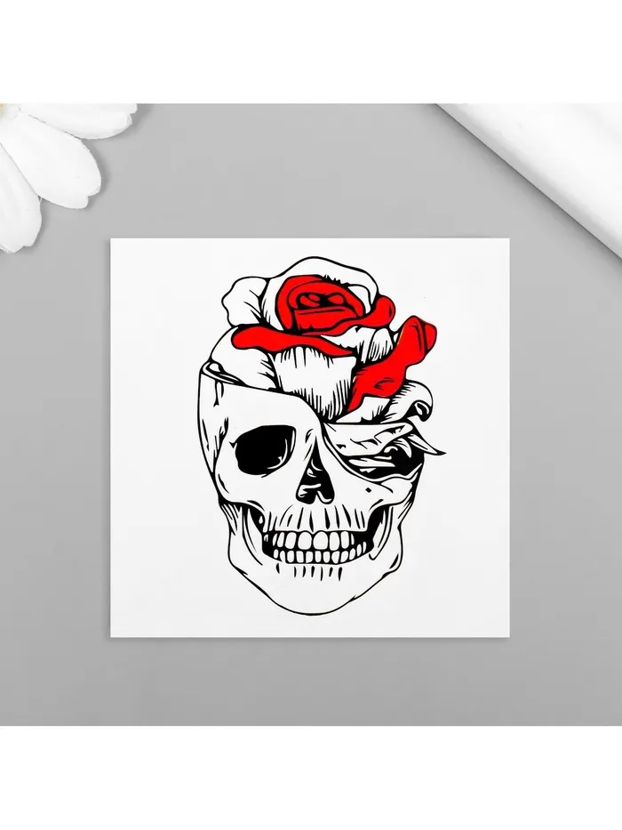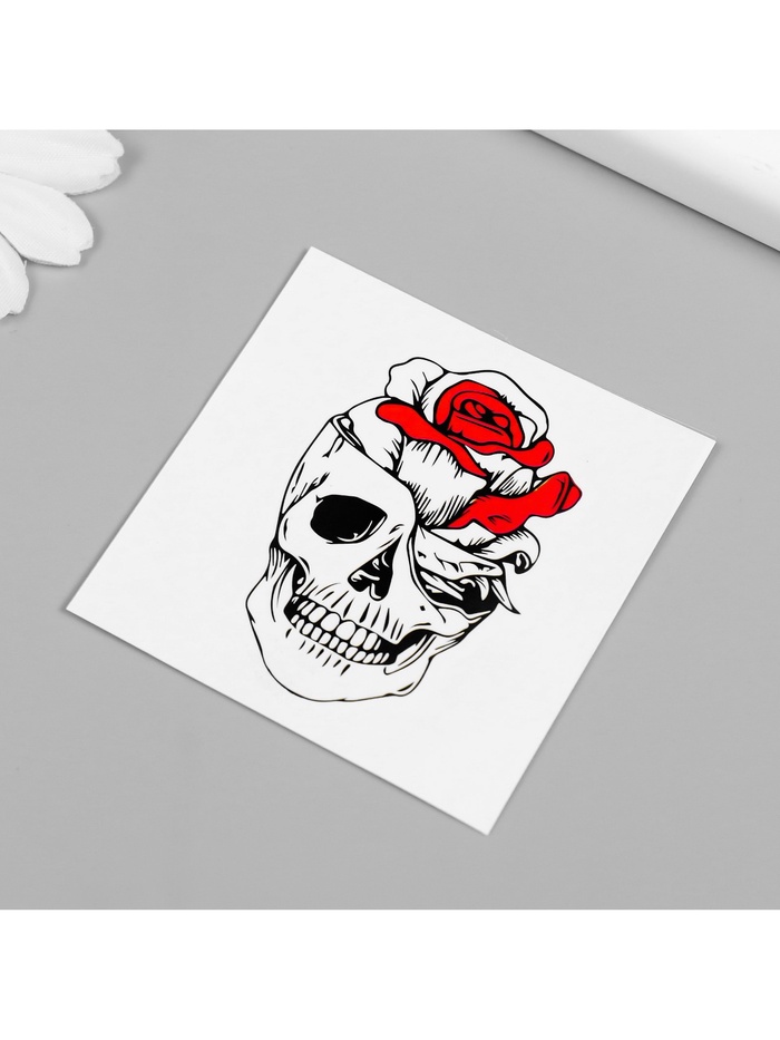Переводная тату на тело чёрно-красная «Череп с розой», 6×6 см — Характеристики