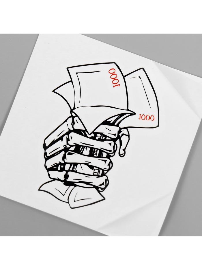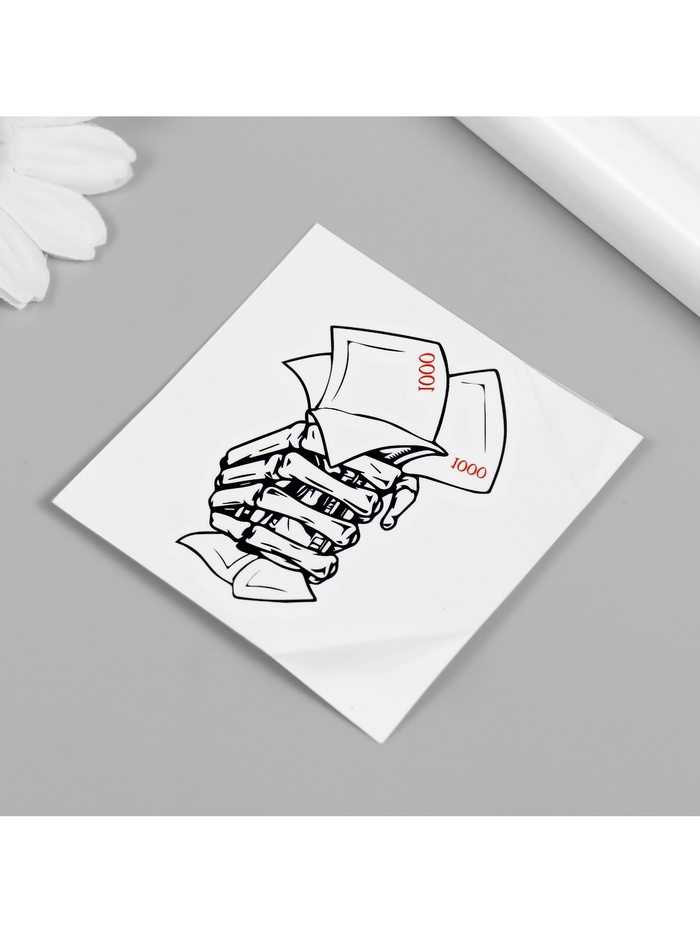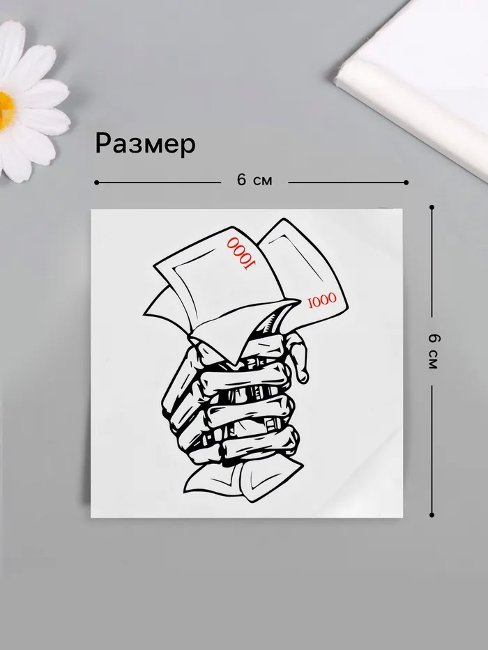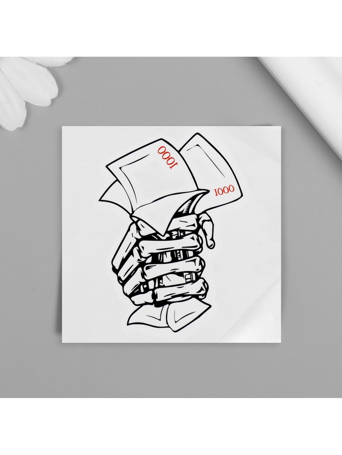 Переводная тату на тело чёрно-красная «Деньги в руке скелета», 6×6 см — Характеристики
