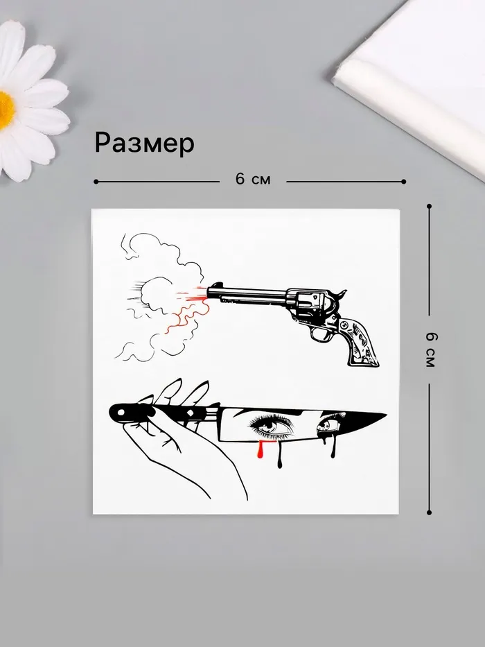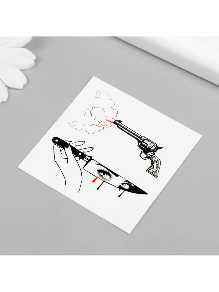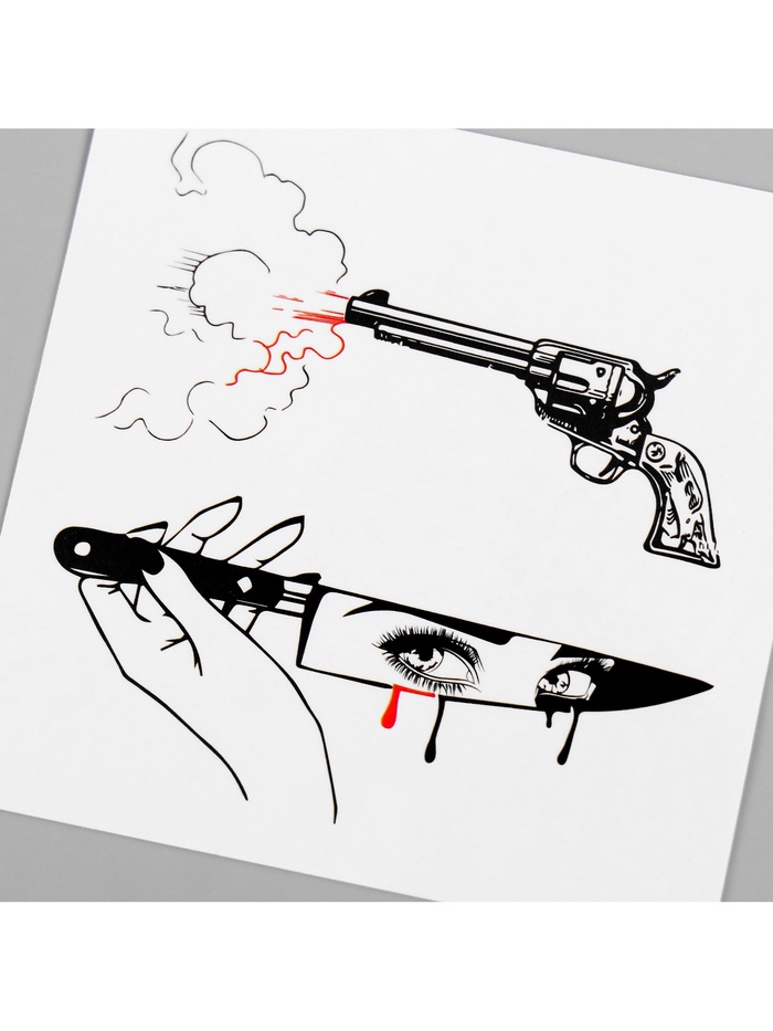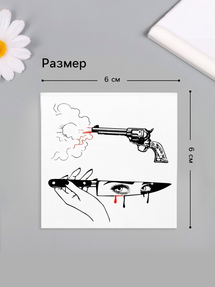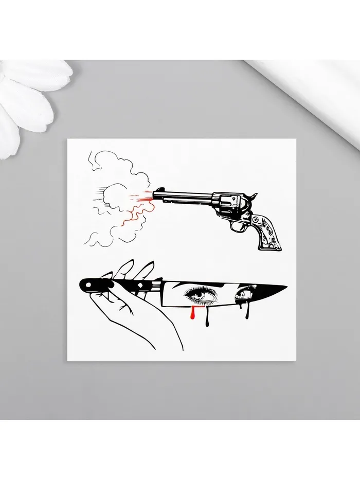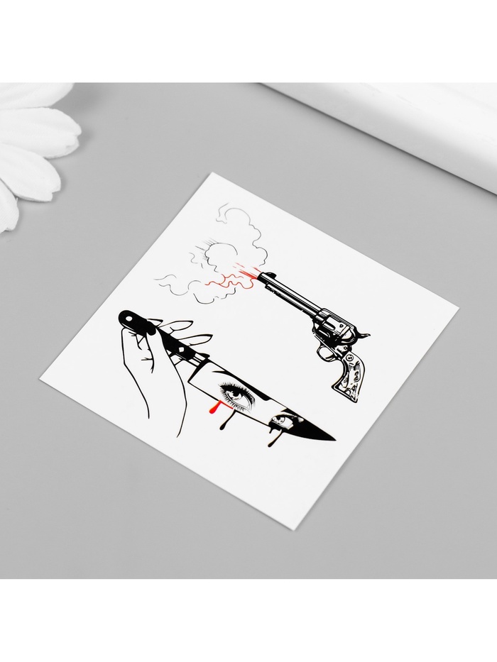 Переводная тату на тело чёрно-красная «Нож и пистолет», 6×6 см — Характеристики