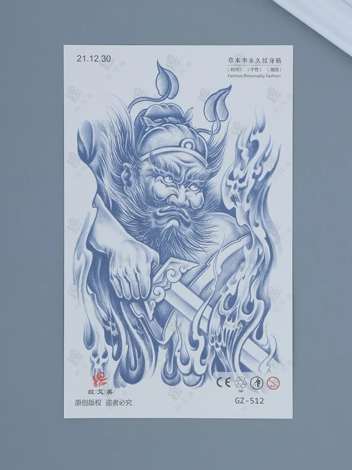 Переводная татуировка с изображением китайского воина в динамичной атакующей позе воплощает силу и решительность, придавая образу неповторимый характер. Яркие цветовые решения и детальная прорисовка делают этот дизайн эффектным акцентом на любом участке тела, подчёркивая мужественность и внутреннюю энергию.