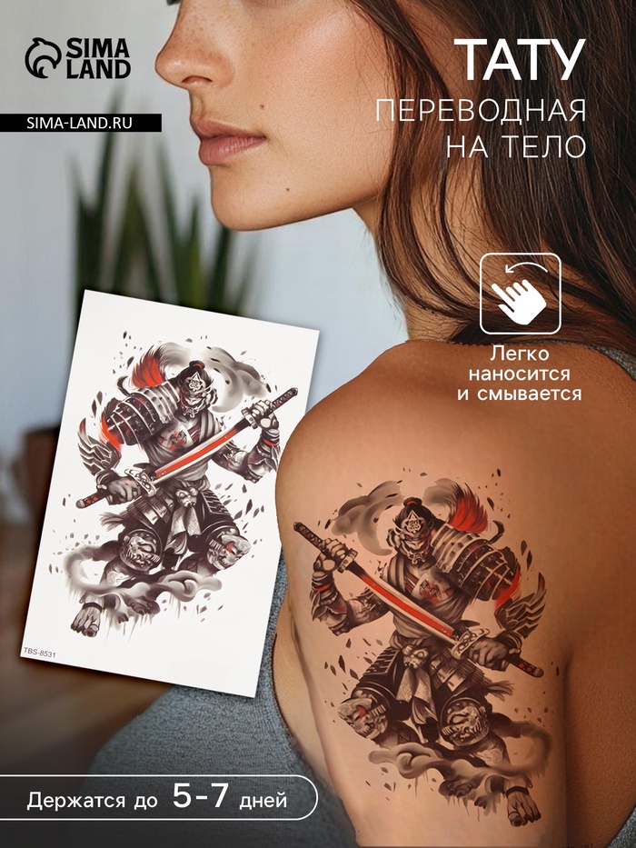 Эта переводная татуировка — не просто временный рисунок, а возможность окунуться в мир истории и воинской чести, не прибегая к постоянным решениям.