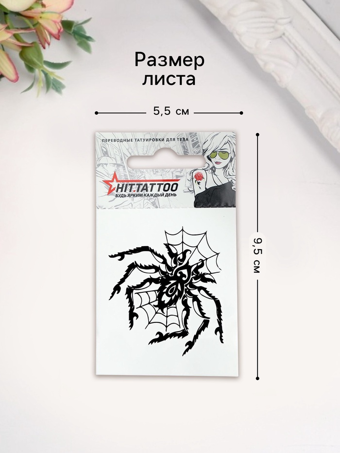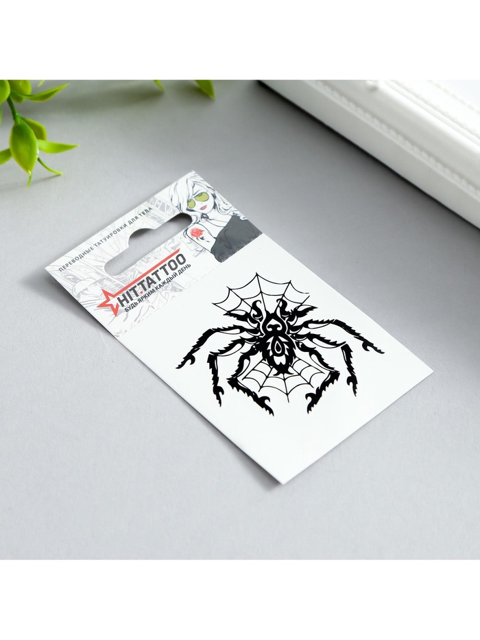 Представляем вашему вниманию стильную переводную татуировку, которая станет ярким акцентом вашего образа. Изображение паука в паутине привлекает внимание своей детализированностью и загадочностью, идеально подходя для создания уникального стиля или дополнения костюма на тематическое мероприятие.