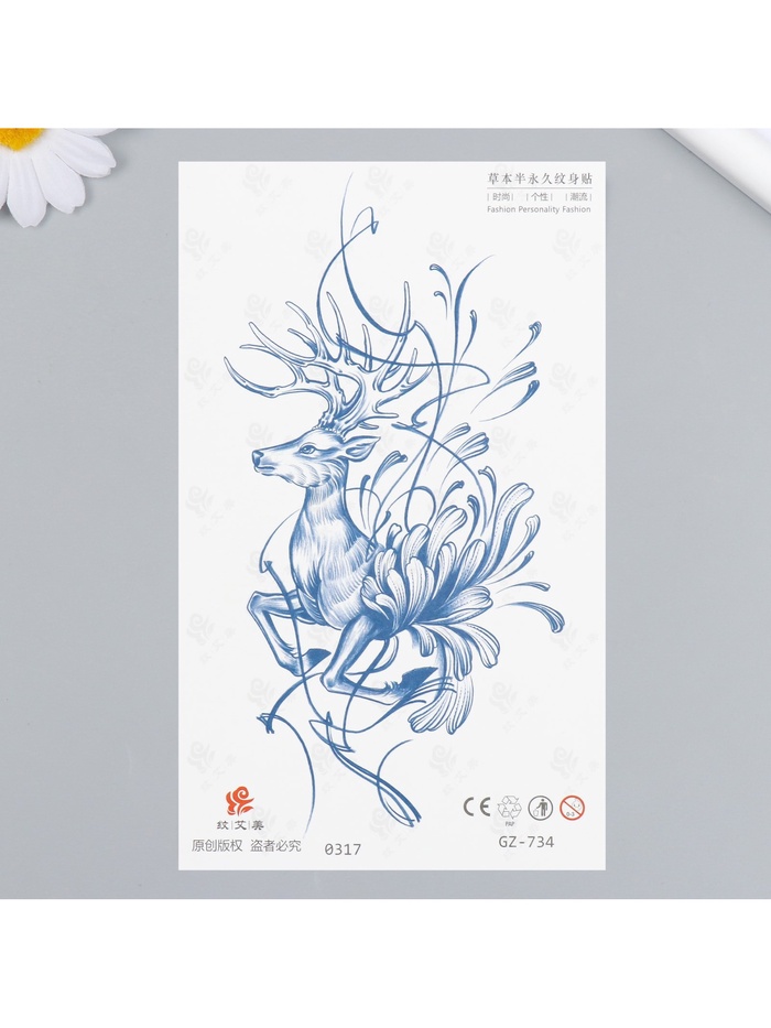 - Яркий акцент для любой кожи: Благодаря выразительному синему цвету и изящному дизайну оленя, тату станет изюминкой как повседневного, так и праздничного стиля. Подходит для людей всех возрастов и пола.