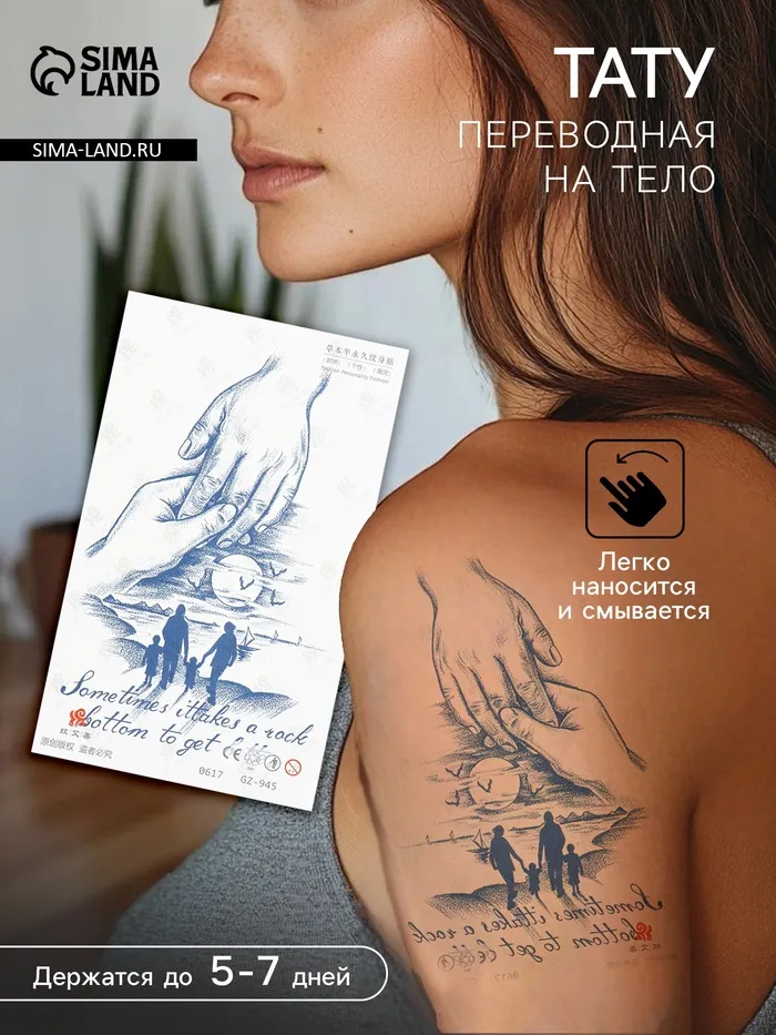 Стань центром внимания: «Семья на прогулке» – это способ выделиться из толпы и показать свою уникальность. Поделись настроением семьи на прогулке с помощью этой оригинальной переводной татуировки!