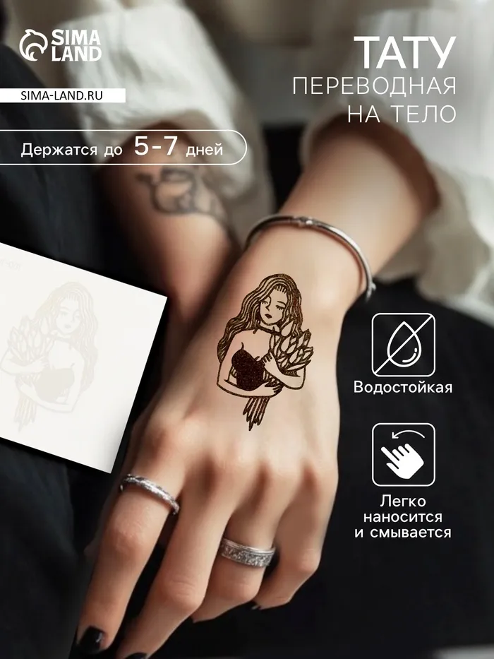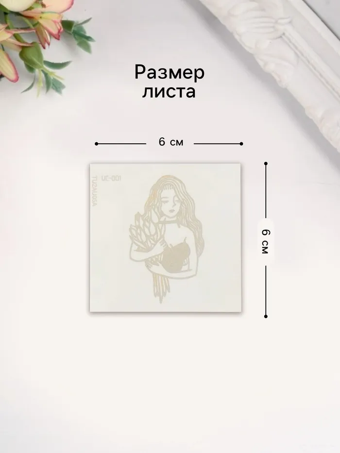 Переводная тату на тело синяя водостойкая «Девушка с тюльпанами», 6×6 см — Характеристики
