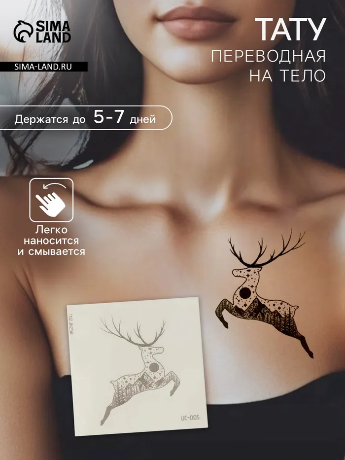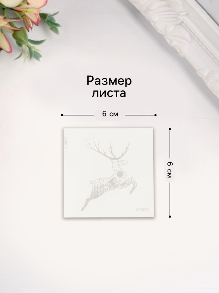 Переводная тату на тело синяя водостойкая «Горный олень», 6×6 см — Характеристики
