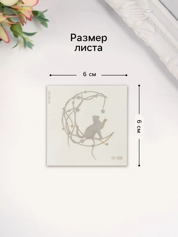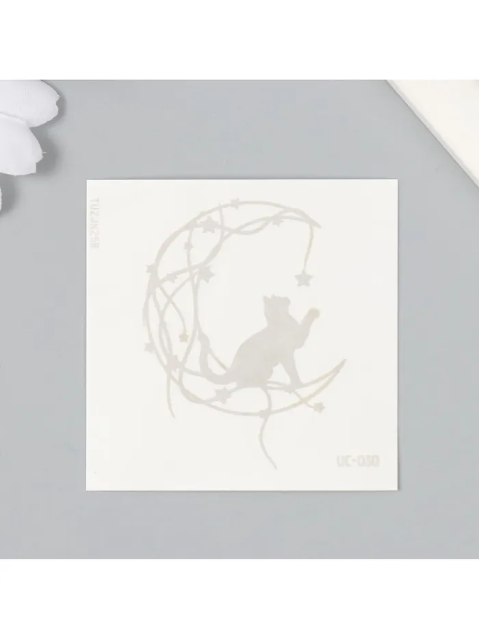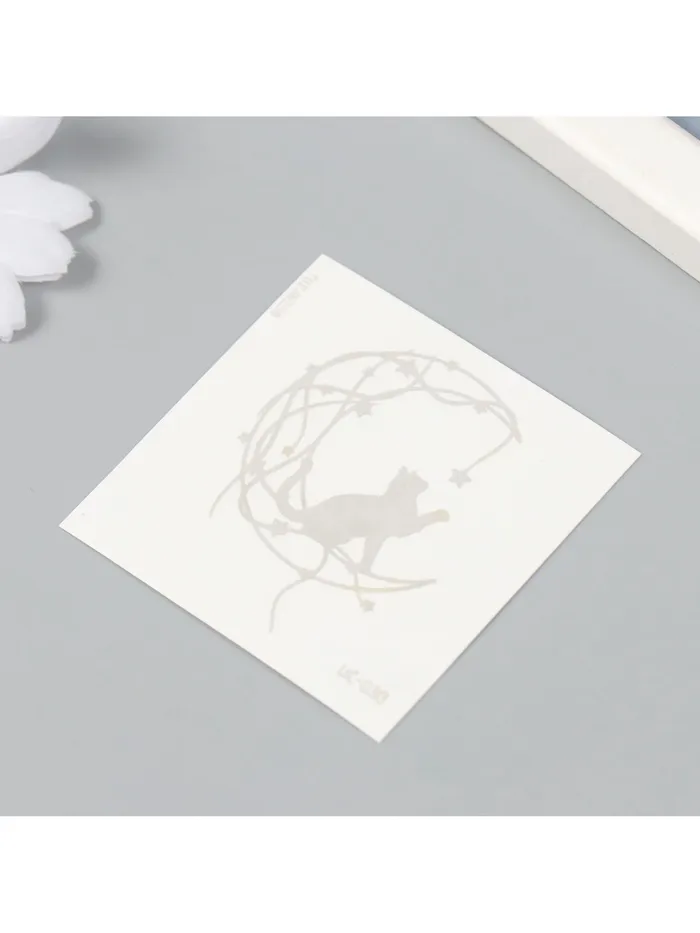 Переводная тату на тело синяя водостойкая «Кошка на месяце: ловит звёзды», 6×6 см — Характеристики