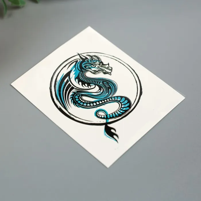 Представляем вашему вниманию переводную татуировку, которая перенесёт вас в мир мифологии и фантазии. Изображение синего дракона, заключённого в идеальный круг, привлекает своей яркостью и символичностью, создавая неповторимый акцент в вашем образе. Это не просто украшение — это возможность проявить свою индивидуальность и добавить изюминку в повседневный стиль.