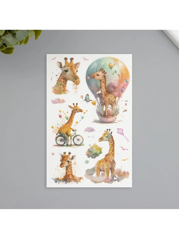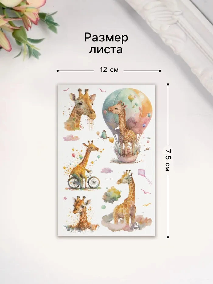 Переводная тату на тело светящиеся с блёстками «Жираф», 7.5×12 см — Характеристики