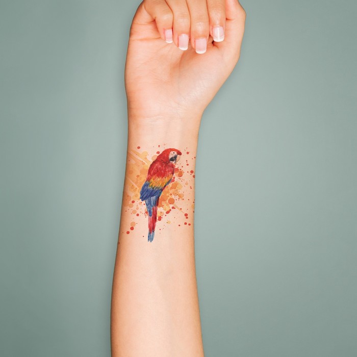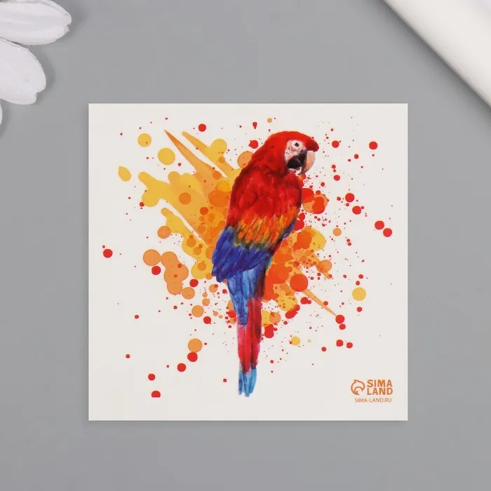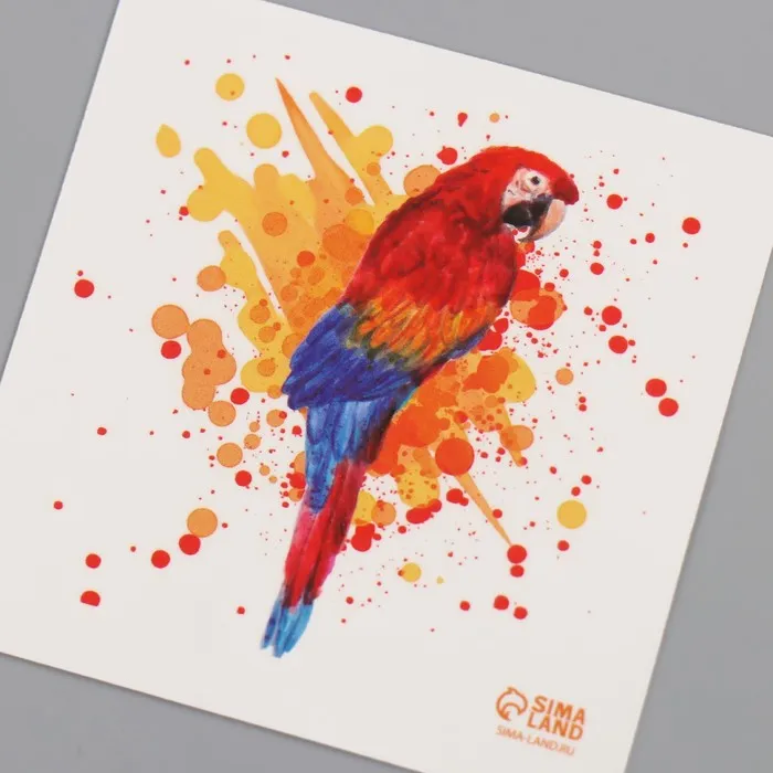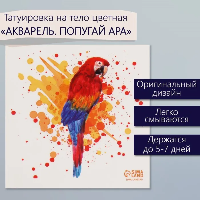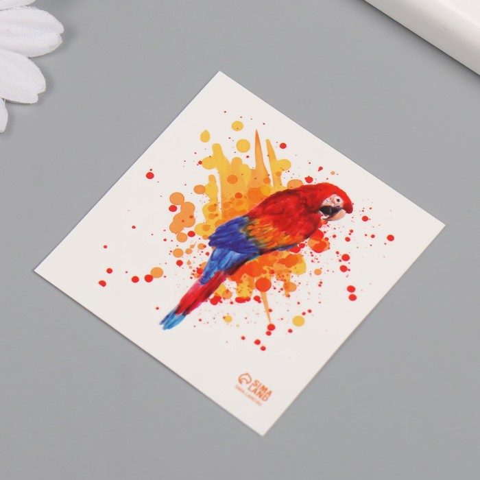 Переводная тату на тело цветная «Акварель. Попугай Ара», 6×6 см — Характеристики