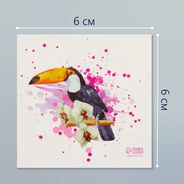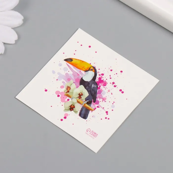 Переводная тату на тело цветная «Акварель. Тукан», 6×6 см — Характеристики