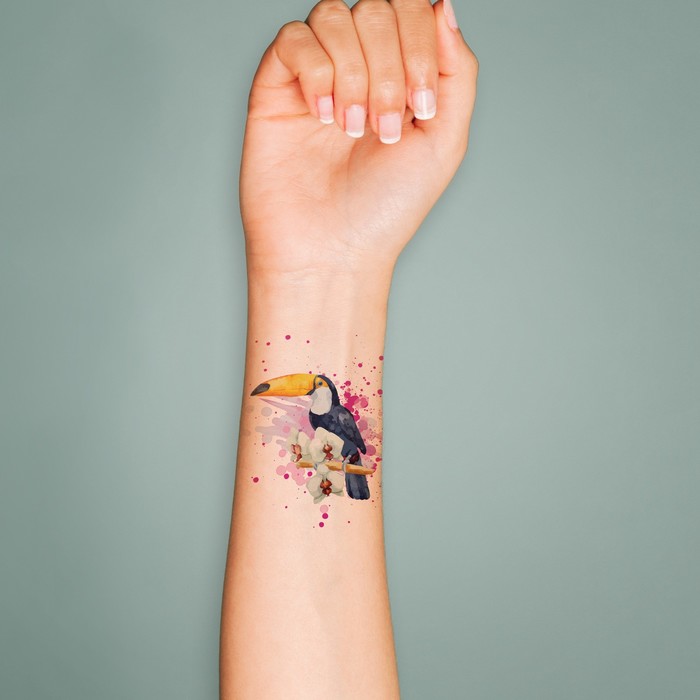 Легкость и самовыражение: Временная татуировка – это идеальный способ выразить себя без долгосрочных обязательств. Подчеркните свою индивидуальность с акварельным туканом и наслаждайтесь комплиментами окружающих!